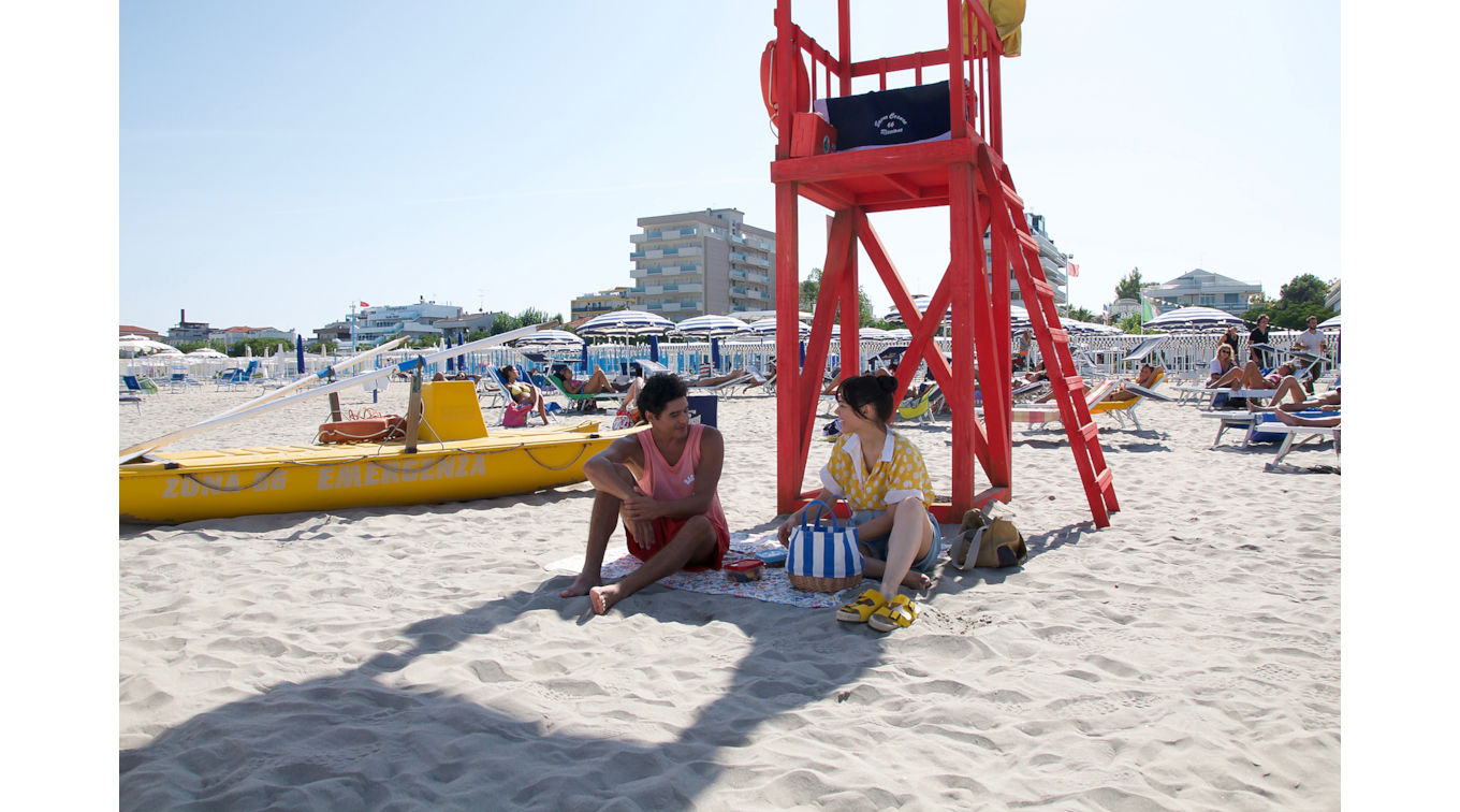 Tornando alle immagini di Nori, sembrano proprio essere il moodboard su cui hanno studio i Thegiornalisti nell’immaginare il video di Riccione, uno dei più recenti capitoli dell’immaginifica estate italiana. A dirigere c’era il duo di videomakers YouNuts (Niccolò Celaia e Antonio Usbergo) che adesso, il 1° luglio, debuttano su Netflix con soggetto e sceneggiatura di Enrico Vanzina (insieme a Caterina Salvadori e Ciro Zecca) e titolo che non nasconde l’influenza della hit: Sotto il sole di Riccione (nelle foto, due scene), con musiche proprio di Tommaso Paradiso, che appare anche come attore in un cameo. Il film si annuncia come un nuovo Sapore di sale, ma più musicale. La trama è quella delle storie di ragazzi in vacanza che s’intrecciano. Con Lorenzo Zurzolo (uno dei ragazzi di Baby) che interpreta il ruolo di un non vedente in vacanza con la madre, Isabella Ferrari, che proprio in Sapore di sale, 40 anni fa, aveva dato il volto alla ragazza dell’estate italiana per antonomasia. Sul finire di agosto poi facciamo suonare L’estate sta finendo dei Righeira, la colonna sonora perfetta per l’arrivo dei temporali sulla spiaggia e per gli amori che sembrano dissolversi con il ritorno in città.