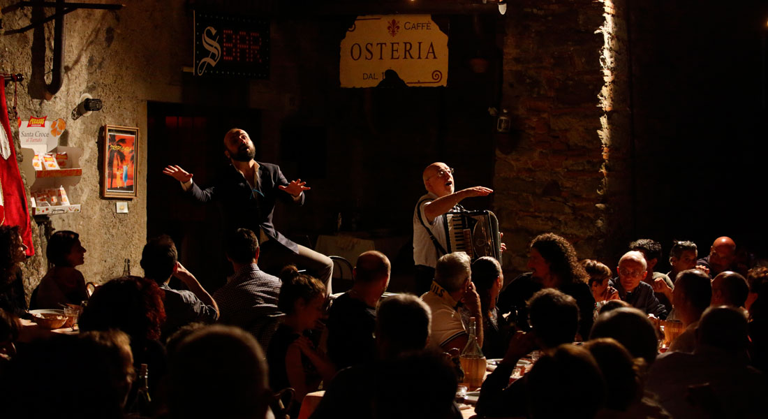 Si mangia sotto le stelle, seduti attorno a lunghe tavolate affollate da spettatori e teatranti. E poi si ascoltano le storie degli abitanti di Anghiari, in provincia di Arezzo, mentre la musica si insinua tra i gesti e le parole. Definito dai suoi autori “cena toscana con una storia da raccontare in quattro portate”, Tovaglia a Quadri unisce da ventitré anni convivialità e narrazione teatrale in una serie di spettacoli che coinvolgono la popolazione locale. Si parla delle problematiche del nuovo millennio e del loro impatto sulle tradizioni locali, si ricordano vite lontane e se ne presentano di nuove. Si passa una serata cullati dal buon cibo e dalle memorie del luogo. Quasi un sogno di mezza, o meglio di fine, estate. Anghiari (AR), dal 10 al 19 agosto.