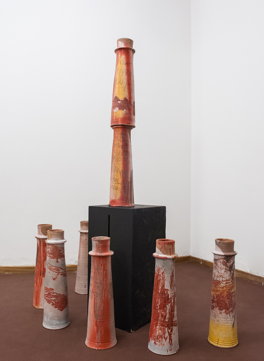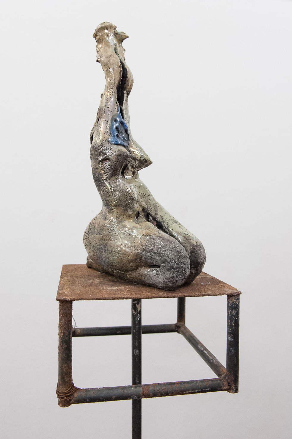 Un linguaggio, quello che l’artista imprime nella ceramica, che riesce a essere estremamente contemporaneo, mentre va a pescare in luoghi reconditi e memorie aracane. Il suo mondo di rifermento è infatti quello dell’antica Grecia e i suoi miti, l’azzurro del Mediterraneo e le civiltà del passato. Le opere nascono da una matrice classica di forme armoniche e femminili, che finiscono per essere deformate e deturpate.