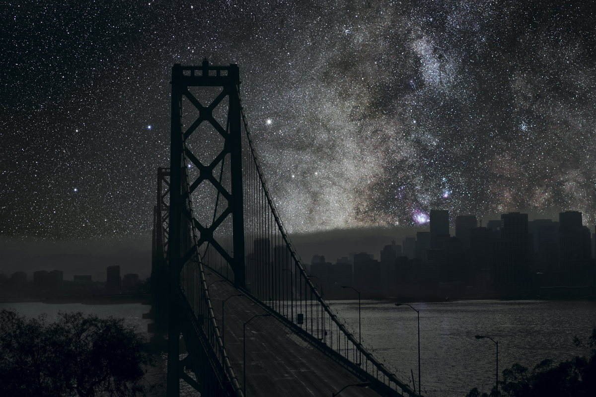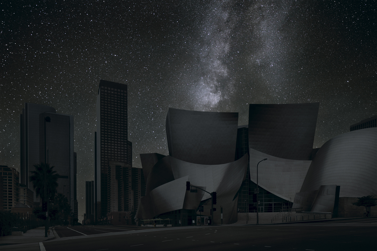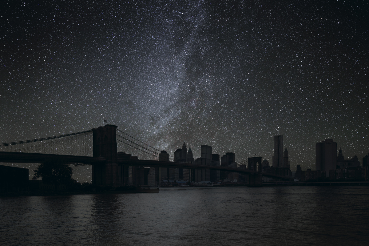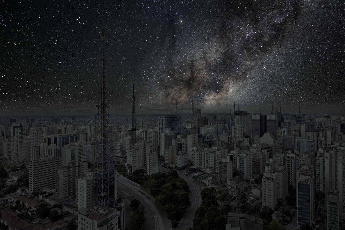 La sensazione di inquietudine è garantita dall’effetto straniamento che si prova di fronte a immagini di metropoli completamente al buio. Nessuna luce brilla, nella notte, dalle finestre dei grattacieli, sulle strade o ai piani bassi degli edifici. Sono le Villes éteintes, letteralmente le città spente, immaginate da Thierry Cohen e in mostra alla Galerie Esther Woerdehoff di Parigi. L’artista si è posto un obiettivo ambizioso: fotografare quel che non si vede, il cielo stellato sulle metropoli. Così ha spento le luci e ha rielaborato gli scatti riempiendo di astri, come in un collage, quel cielo normalmente opaco e quasi invisibile. Ma con un’attenzione particolare, perché quelle volte celesti esistono davvero e Thierry Cohen le ha fotografate (tutte nello stesso modo) nei luoghi più selvaggi della terra, dall’Atacama al Sahara. Un gioco, ma freddo: quelle ritratte sembrano città fantasma, sovrastate da una (irreale) energia siderale. (micol de pas)