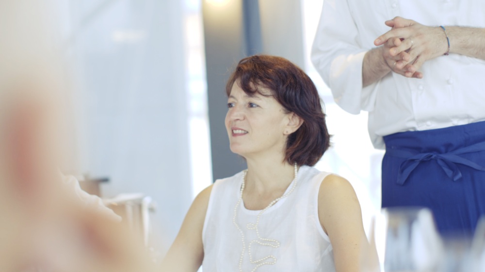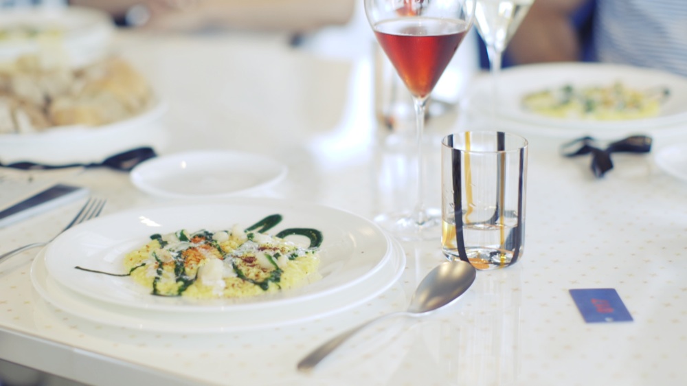E così si dà inizio al pranzo. Lo chef Fabrizio Ferrario apre le danze con una zuppetta di pomodoro verde, polpo, cocomero e basilico. Seguono polpa di granchio bretone con cipollotti confit, asparagi e bottarga di tuorlo, poi un risotto alla curcuma con capesante arrostite e un astice blu con scalogno in carpione e robiolina fresca. Piatti estivi, freschissimi, che aiutano a contrastare il caldo di questi giorni accompagnati da vini bianchi, bollicine e rosè.