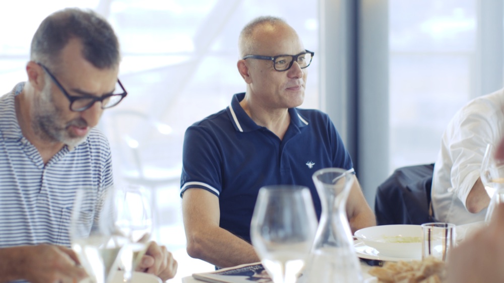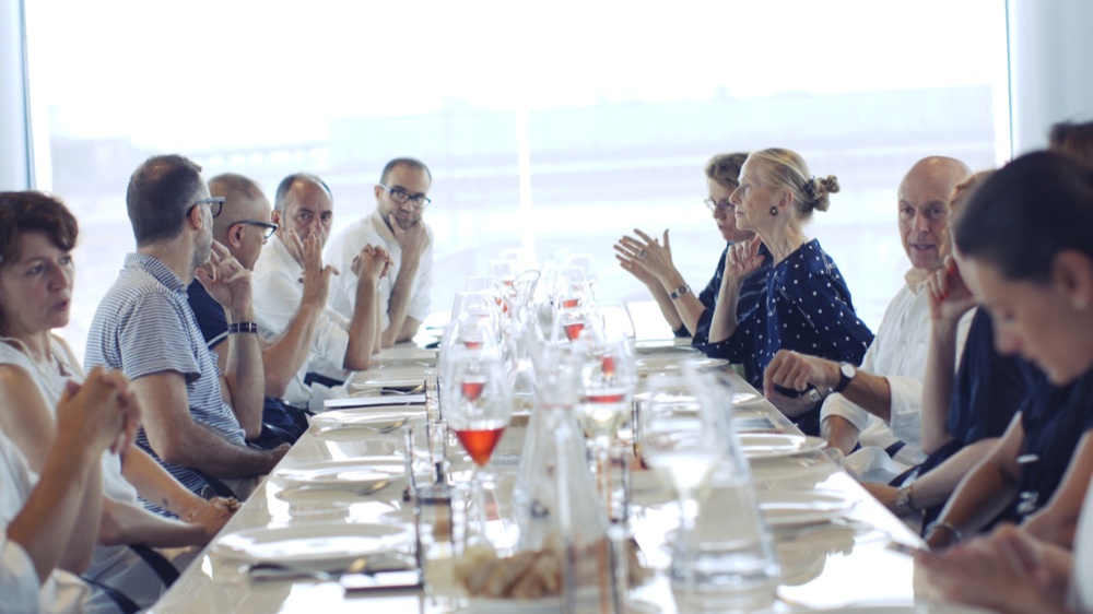 Una tavola rotonda, o meglio, un unico tavolo rettangolare, lungo otto metri, con vista sullo skyline milanese, ha riunito designer e architetti, giornalisti e critici del design per gustare le meraviglie culinarie preparate dallo chef del Porticciolo 84 di Lecco, Fabrizio Ferrario, e scambiarsi opinioni e idee sul design milanese.