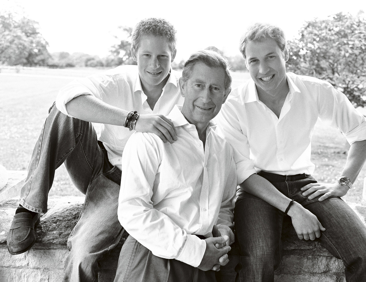 Carlo d’Inghilterra con i figli Henry e William, Londra 2004
