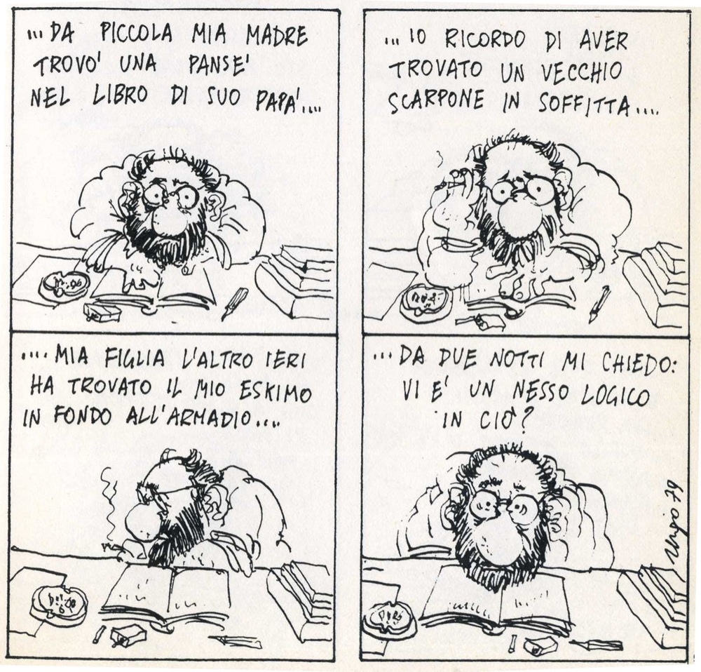 E’ il suo alter ego Bobo, paffuto, occhialuto, dal nasone sproporzionato, ad animare dall’ottobre 1979 le strisce satiriche pubblicate la prima volta dalla rivista di fumetti Linus, poi apparse ininterrottamente sui principali quotidiani e periodici italiani.