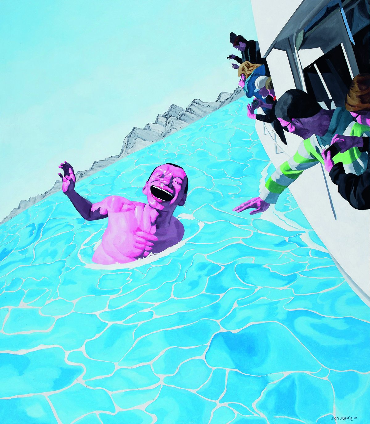 È uno dei protagonisti della nuova avanguardia artistica cinese e di quel boom che, a partire dagli anni Novanta e poi nei primi anni di questo millennio, ha fatto battere record milionari per le opere dei giovani cinesi nelle sale d’asta di Hong Kong, Londra e New York. Ha creato un suo marchio inconfondibile con le facce di cinesi che ridono: in parte autoritratto, in parte parodia, in parte critica storica e sociale. Adesso Yue Minjun è ospite (fino al 17 marzo) alla Fondation Cartier di Parigi con la più grande mostra mai organizzata in Europa: quaranta suoi dipinti provenienti da collezioni di tutto il mondo e diversi disegni mai esposti prima. Un’occasione per conoscerlo e cercare di capire che cosa si nasconde dietro a queste risate insistenti e inquietanti.