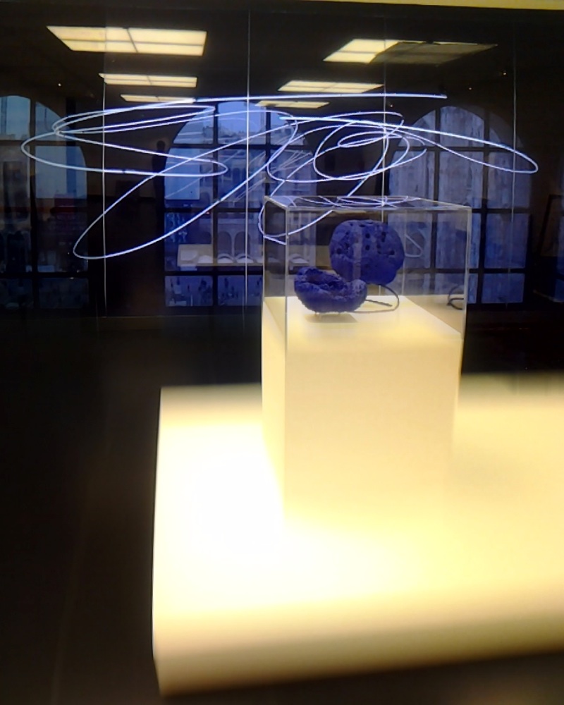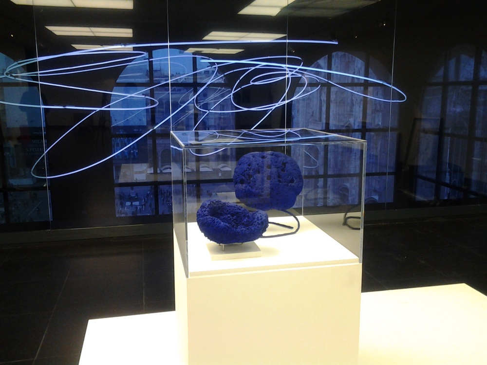 – Spazio e colore. Lo spazio immateriale è la meta cui tendono entrambi: Fontana cerca di raggiungerlo con le aperture spaziali e Klein nel procedere dal monocromo al vuoto. Anche la ricerca cromatica li accomuna, con l’uso del blu di Giotto e dell’oro della tradizione medievale, ma anche delle immagini astronomiche come fonte d’ispirazione.