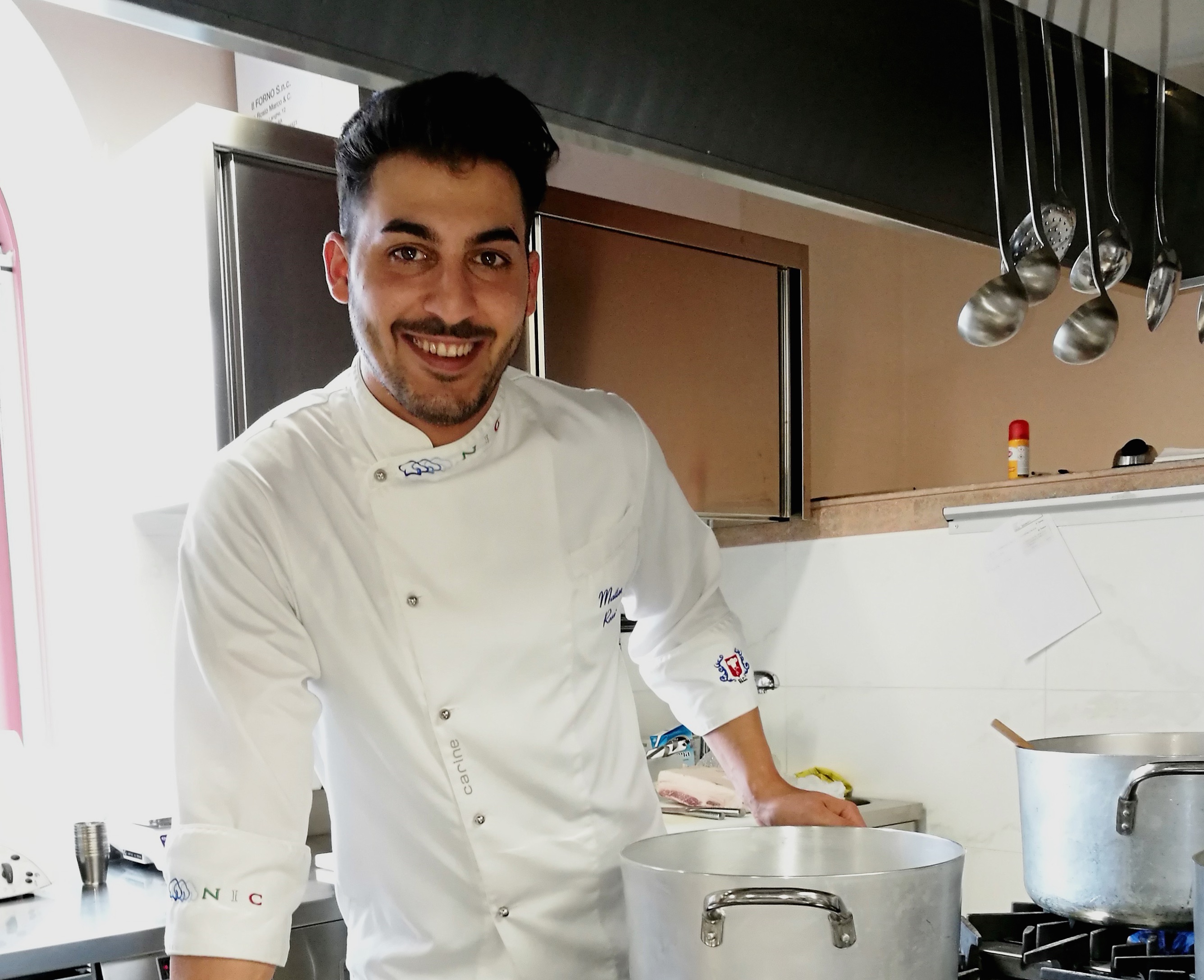 Matteo Rossi. Da poco più di un anno è lo chef di Villa Prato, relais nel cuore di Mombaruzzo (At) aperto dalla famiglia Berta che, tra queste colline, produce grappa da 70 anni. Matteo nasce a Mombaruzzo e in questa zona del Piemonte è di casa: la materia prima del territorio per lui non ha segreti. La carne arriva dal suo macellaio di Nizza Monferrato come quel cardo gobbo che acquista, sempre a Nizza, dal contadino di fiducia.