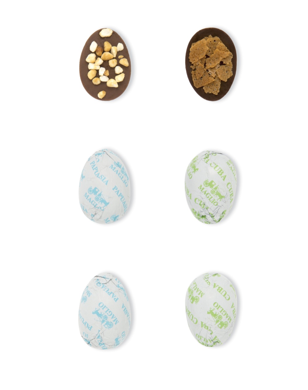 Fantasy. Maglio festeggia i 140 anni ‘in dolcezza’ con le Uova di drago, dalla screziatura colorata (blu, rosso, arancio, bianco), al latte e fondente, confezionate in blister da sei. ottimi anche gli ovetti Origine, con il ripieno al caramello e riso soffiato che si abbina al cioccolato cru Papuasia (latte) e il ripieno alla nocciola e biscotto che sposa perfettamente il cioccolato cru Cuba (fondente).