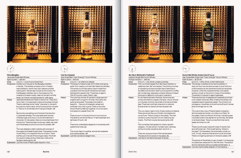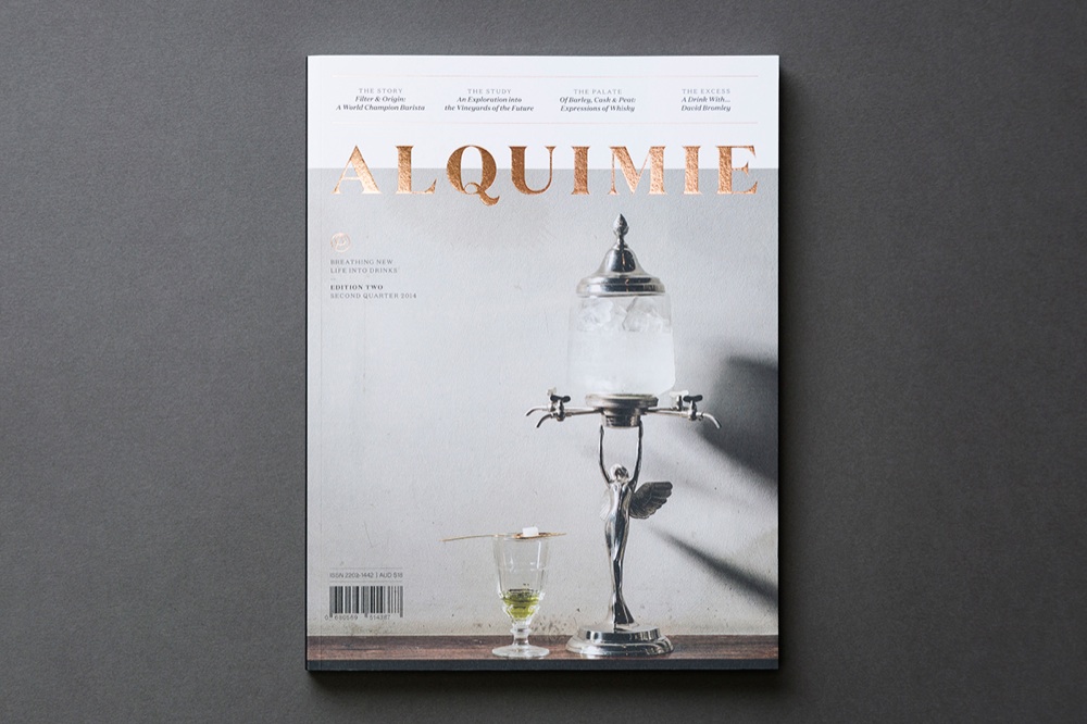 Alquimie è una rivista, ma anche un progetto di libertà e passioni, oltre che di umiltà. Tutto sotto il segno del beverage. Al secondo numero, trimestrale, nasce in Australia dal lavoro di quattro amici appassionati di drink (e design), Josh, James, Nic e Raul, ognuno con il proprio interesse e la propria sensibilità. Raccoglie articoli da tutto il mondo e, a dispetto dell’immagine patinata, si rivolge a tutti, “senza elitarismi”, dicono i proprietari e fondatori.