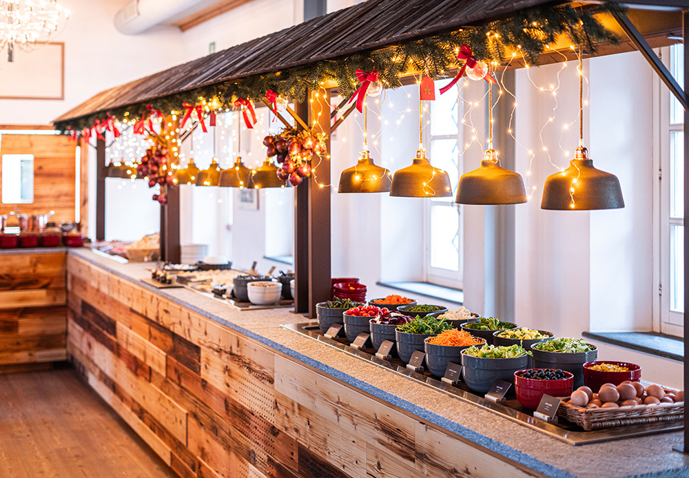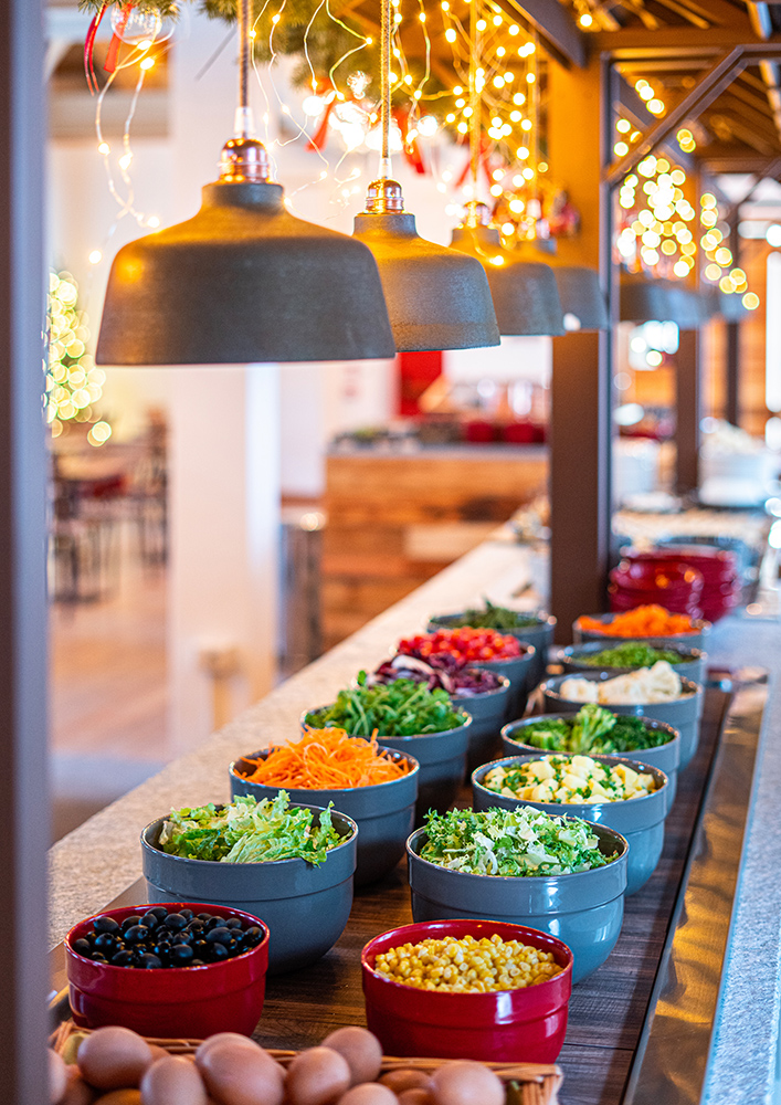 I piatti serviti spaziano dalle vellutate calde, da arricchire con crostini e frutta secca, a proposte fredde di primi e insalate, salumi e formaggi, sino alle frittate e alle torte salate, il tutto da accompagnare con focaccine alle olive e pane di ogni varietà di cereali. Una selezione che cambierà da centro a centro, da Pré Saint Didier a San Pellegrino fino a Roma, per valorizzare gli ingredienti del territorio.