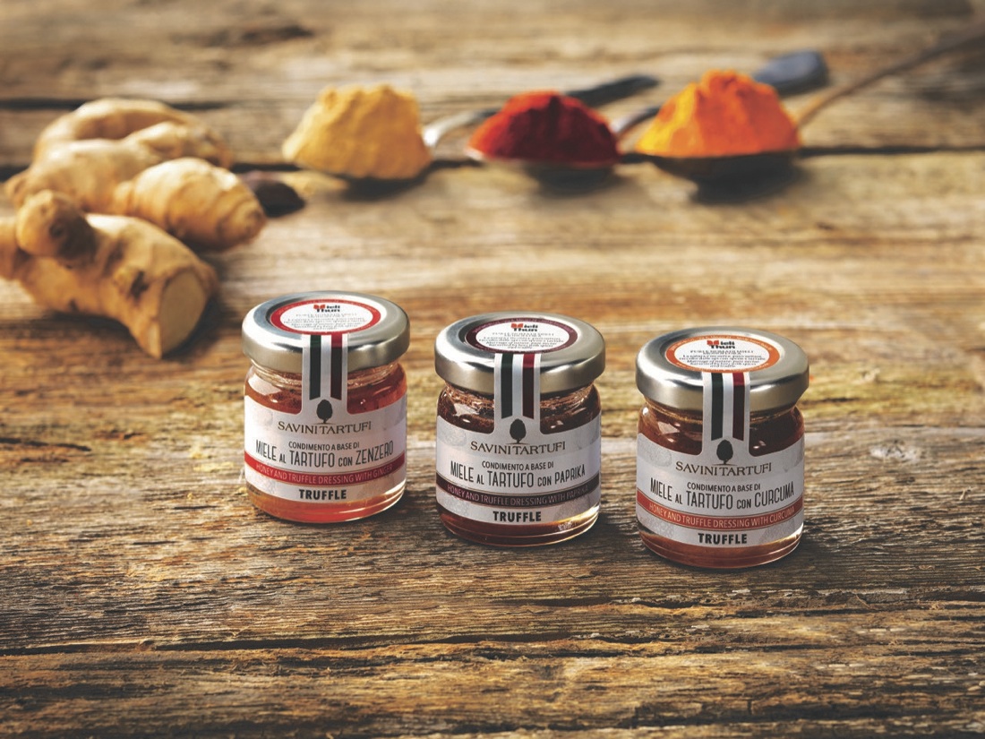 Insieme a Thun, azienda leader del miele di qualità, per queste festività Savini propone mieli nomadi, ovvero prodotti da alveari che si spostano periodicamente in varie zone del nostro paese, aromatizzati al tartufo e zenzero, oppure al tartufo con paprika e in fine un miele al tartufo con curcuma. Per gli appassionati di tartufo Savini ha creato, Diamante nero, un sale aromatizzato che guarnisce il piatto aggiungendo una nota sapida del fungo più pregiato al mondo. Ideale sulla carne che il pesce, diventa un regalo prezioso da veri estimatori.