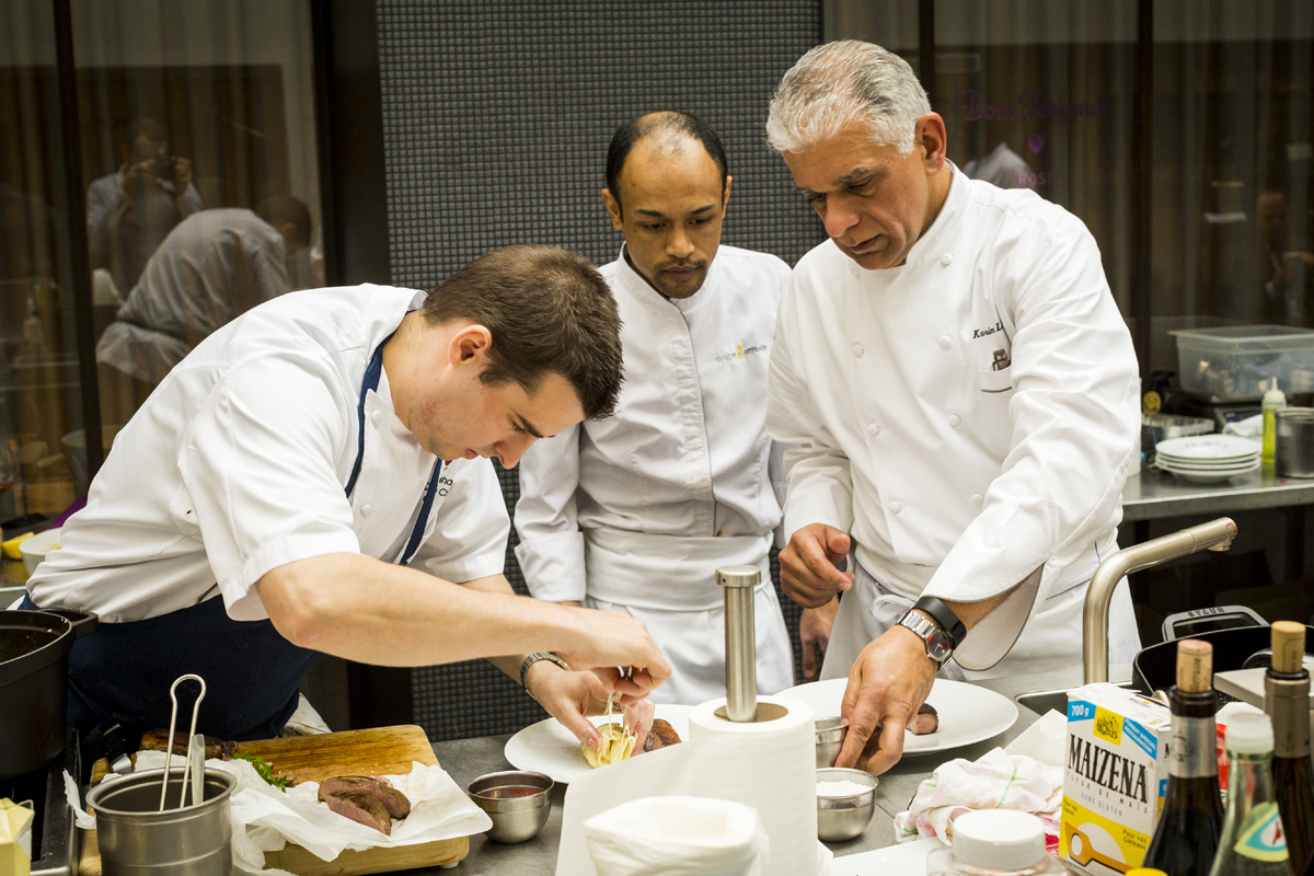 Il team riunito ha poi deliberato come dessert una ‘Crema di Brie con tartufo nero’ e un ‘Dessert di frutti rossi, infusione di barbabietola e pepe rosa’.