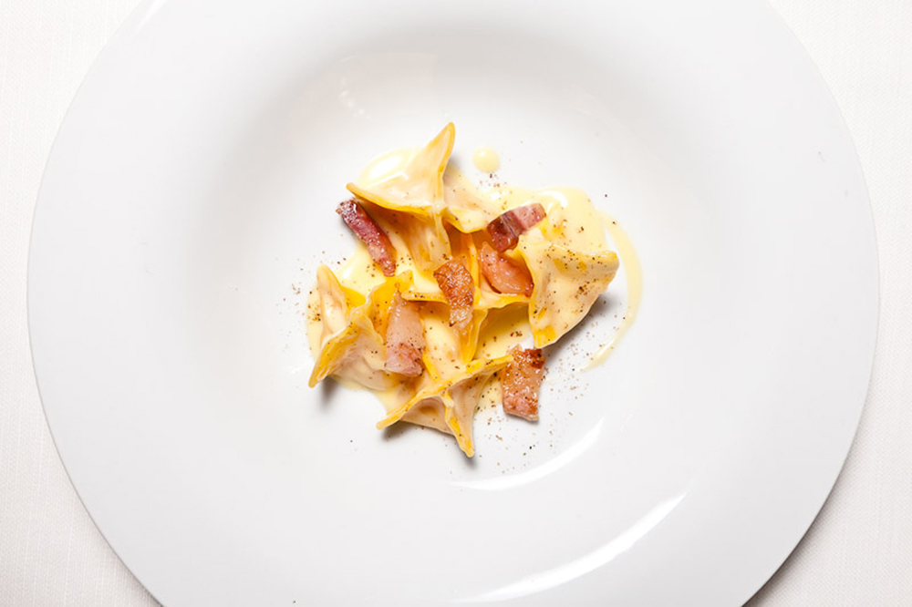 C’è un altro elemento del passato che potrebbe tornare: ‘Negli ultimi anni è stata esaltata la figura dello chef, ma quando ho cominciato a fare questo mestiere – avevo 16 anni e la mia prima esperienza fu al Danieli di Venezia – il centro era la sala, il vero padrone di casa era il maitre, che cucinava un 20-30% davanti al cliente. Il cuoco era una figura generosa come la disegnano ancora i bambini, col pancione, col faccione da scemo. La cucina degli ultimi 30 anni ha sgombrato la sala, lasciandole un ruolo da sommelier, tutte le altre figure sono morte. Oggi se chiedi a un ragazzo di sala di fare un filetto alla tartara, non è capace; se gli chiedi di sbucciare la frutta davanti all’ospite o di sfilettare un piccione o un’anatra, non è capace. Io invece questa storia non l’ho abbandonata, ce l’ho lì. E se Mogol ancora continua a far piangere quattro generazioni, io adotto la filosofia di Mogol, che è molto più grande di me. Quindi se ci sarà un ritorno a certe tradizioni, io sono pronto, gli altri non so’.