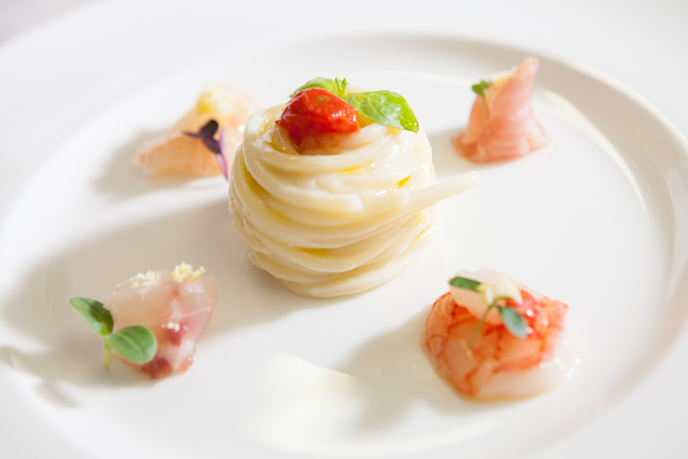A proposito di tradizione, chef D’Aquino ha le idee molto chiare sul concetto di territorialità: ‘Quando ero all’estero mi sono sempre sentito italiano, per cui tutto quello che era italiano era il mio territorio. Ho delle radici campane, quindi mi porto dietro dei prodotti dall’infanzia, però oggi c’è la possibilità di avere tutto in qualunque momento e in pochissimo tempo: dal gambero di Mazara del Vallo alla mozzarella di bufala alla Fassona piemontese. Perché devo limitarmi ai prodotti di un territorio ristretto al posto di sviluppare a 360 gradi la mia idea di cucina?’.