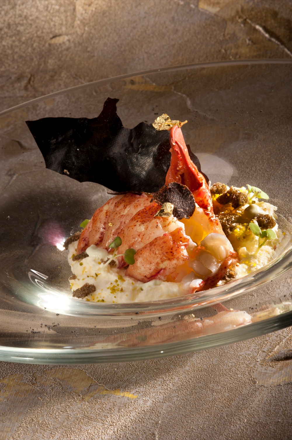Astice blu in olio di cottura, spuma di patate, crumble di pane nero, vinaigrette al dragoncello (Courtesy of Italian Gourmet)