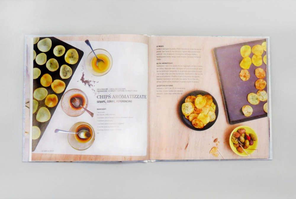 Le chips: sono la nuova frontiera del junk food, ma nell’accezione più gratificante (ed homemade) del termine. Sottili, croccanti e fragranti, profumate al rosmarino, al lime o all’aceto. Possono essere di patate viola, di melanzana, ma anche di parmigiano e di lasagne, di banana o mela. Il libro Chips, patatine & dintorni di Orathay, nella collana Piccoli Spuntini di Guido Tommasi Editore, svela tutti i segreti per prepararle: quali ingredienti scegliere, come tagliarli, il tipo di cottura (in olio caldo, mai fumante o per i salutisti, al forno), come presentarli e con quale dip servirli. Al lettore resta solo l’irresistibile tentazione di cimentarsi subito ai fornelli e di scegliere il momento giusto per mettere a tavola le sfoglie lievi come aperitivo, contorno o dessert. Da sgranocchiare con gusto!