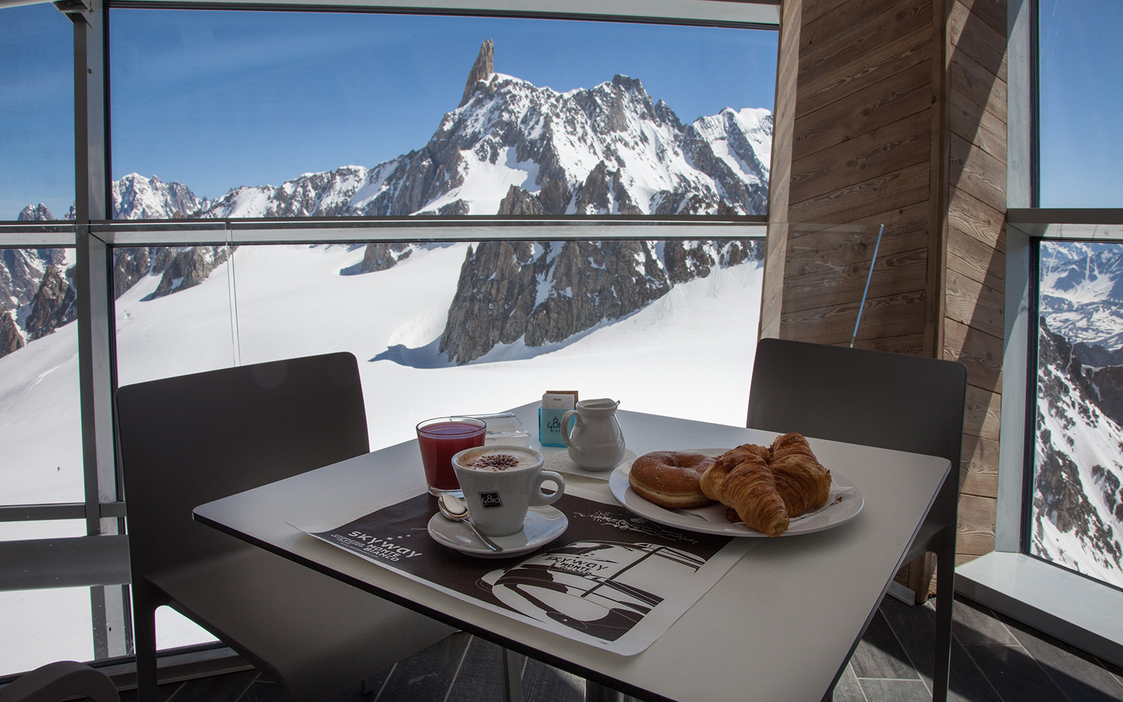 Non solo vini: perché Skyway Monte Bianco offre un viaggio nella gastronomia di Courmayeur e della Vallée: al ristorante Bellevue sempre al Pavillon du Mont Frèty, il menù propone piatti a km0 e della tradizione, mentre la vista può godere, attraverso le ampie vetrate, del panorama eccezionale che va dal massiccio del Monte Bianco in una successione di valli, vette e ghiacciai. Sempre al Pavillon si potrà fare uno shopping goloso, la fontina, il fromadzo, il lardo di Arnad e il jambon de Bosses, ma anche altri pregiati formaggi, salumi, miele, vini e liquori come il noto génépy.
