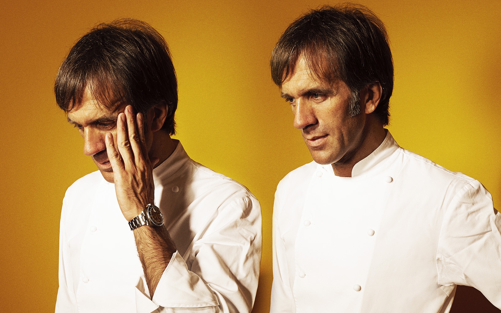 Certo, quello dello chef del D’O di Cornaredo, che quest’anno compie undici anni, non è “il solito” risotto: si tratta di un piatto caratterizzato “dalla cucina del levare, come la chiamo io: cioè levo le parti pesanti e superflue della tradizione e alleggerisco, al tempo stesso però valorizzo il più possibile le materie prime, con cotture e procedimenti che permettano di rendere al massimo sapore e profumo. Punto sugli ingredienti fin dal nome della mia ricetta, che non si chiama più risotto, ma zafferano e riso”. Il riso qui infatti viene tostato al naturale senza aggiungere nulla, burro e grana vengono aggiunti solo in mantecatura in piccolissime quantità, mentre a parte lo zafferano viene messo in infusione a 70 gradi con l’amido di mais (maizena), così da ottenere una salsa che tragga dalla spezia il massimo del colore e del sapore.