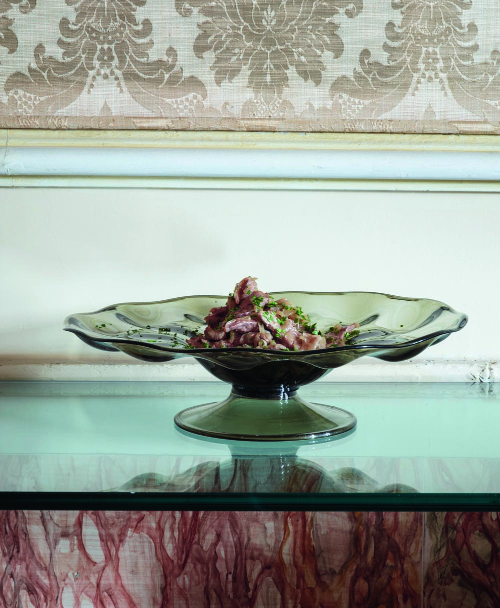 Questo e altri piatti tipici di Venezia (senza dimenticare il mitico aperitivo locale, lo Spritz) sono stati da lei raccolti nel libro Venezia nel piatto… ma che piatto! (Marsilio Editori) fotografati da Jean-Pierre Gabriel su rari vetri artistici di Murano, un volume che per il riuscito matrimonio tra arte culinaria e vetraria, è riuscito a conquistare a Pechino il Premio Gourmand ‘Best in the World’ 2014 nella categoria “Ricette Storiche”.