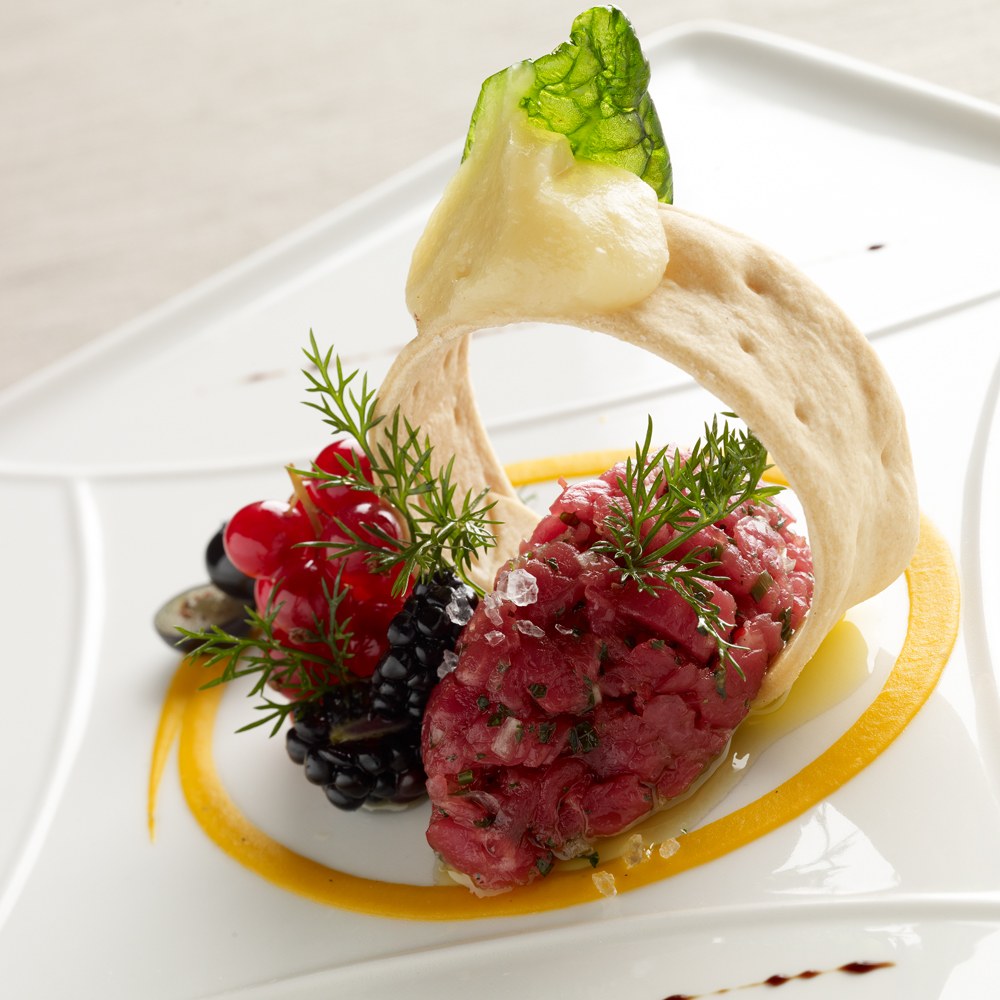 Questa considerazione determina l’approccio di Croatti alla sperimentazione culinaria, che si avvantaggia del fatto che il ristorante Dolomieu è aperto circa otto mesi l’anno (‘perché siamo in una località turistica’) e che fa tesoro di continui viaggi e collaborazioni all’estero (‘per vedere cosa fanno altri cuochi’). Quando il ristorante è chiuso, dietro le saracinesche abbassate l’intero staff è al lavoro, non solo la cucina ma anche personale di sala e sommelier. Si parte ‘da un’idea nuova, poi arriva la materia prima, si comincia a studiare e provare il piatto finché risulta perfetto, anche se la perfezione non esiste, esistono opinioni e gusti e sensazioni che un piatto può trasmettere’.