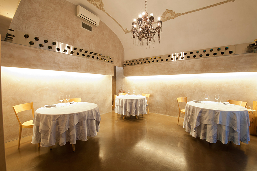 Fatta salva la preparazione di base, infatti, diventa proprietario del ristorante molto presto (‘Sono ormai 25 anni che ce l’ho’) e questo ha inevitabilmente ridotto le possibilità di girare in lungo e in largo per fare stage presso chef di grido. Anche perché ‘all’epoca era meno facile di oggi, c’era meno disponibilità e meno abitudine, anche dal punto di vista burocratico’. È finita che ‘non ho fatto brigata né esperienze particolari, solo quelle che mi gestivo da solo andando a mangiare altrove, viaggiando’ – gli interscambi con i Giovani Ristoratori hanno contribuito, da questo punto di vista.