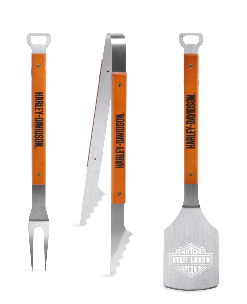 Per weekend di fine estate, vacanze tardive o semplicemente ‘raduni’ in terrazza, gli appassionati di esperienze on the road e di moto Harley-Davidson hanno a disposizione, nei concessionari del marchio, un’intera collezione ‘custom’ di accessori da utilizzare a tavola o durante la preparazione di grigliate o pic nic. Si passa dalla borsa termica in metallo, che riproduce quella degli anni ’50, con le rifiniture cromate, al ceppo in legno con un set di coltelli da bistecca, alla ciotola in bambù per servire l’insalata. Per chi preferisce mettersi in gioco con la griglia, forchettone, spatola e pinza in legno e acciaio inox con impugnature-apribottiglia, un tagliere in bambù e un set di spiedi di metallo. A completare la collezione, un guanto in silicone e gli stampi per il ghiaccio per avere a portata di mano anche cubetti a forma di logo #1 e teschio. Ogni oggetto è personalizzato con il logo Bar&Shields.