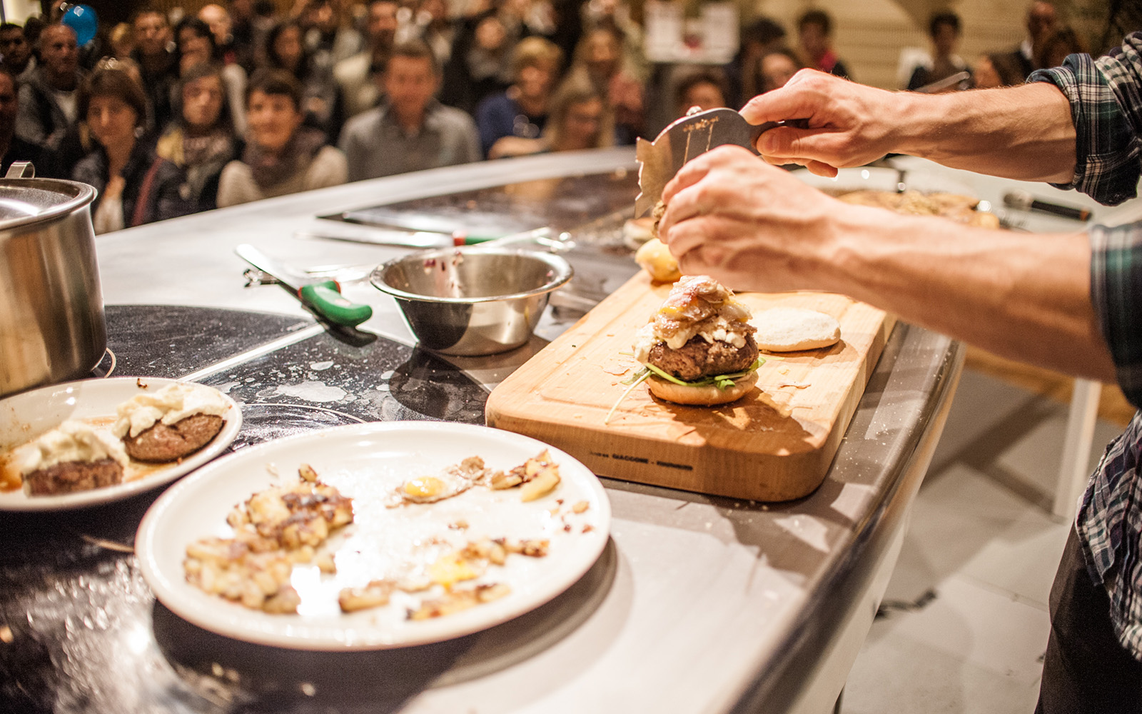 “Abbiamo utilizzato tutti prodotti del territorio: il Piemonte in questo periodo è particolarmente generoso – racconta Marisa – e siamo partite da un antipasto tipico, la carne cruda battuta al coltello. Per ottenere un hamburger l’abbiamo fatta appena scottare con un goccio d’olio in una padella molto calda, attenti a mantenere l’interno crudo e a fare in modo che si formasse una crosticina croccante all’esterno. Invece del cheddar abbiamo poi aggiunto della toma e delle uova di quaglia (risultano più leggere) che facessero da conduttore del profumo e sapore del tartufo. Infine le foglioline di baby spinaci hanno conferito al nostro hamburger croccantezza e freschezza. Ma la parte più difficile non è stata cucinare, quanto tenere testa a Fede e Vic che, inebriati dal profumo del tartufo, volevano assaggiare tutto e non ci lasciavano lavorare!”.