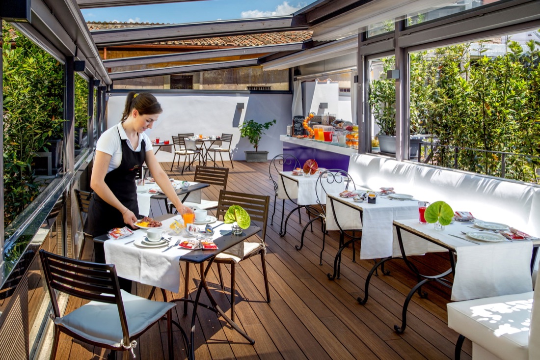 Coloro che scelgono la Citta Eterna, sul rooftop dell’hotel del Corso possono gustare brioches di tutti i tipi, frolle fragranti, torte tentatrici (anche artigianali) e poi salati, panini e focacce, oltre a molte altre golosità, godendo di scorci unici sul centro di Roma. E perché no, sorseggiando una bella spremuta fresca oppure un ottimo cappuccino dalla schiuma cremosa saranno serviti, dettaglio non da poco, dal personale super accogliente.