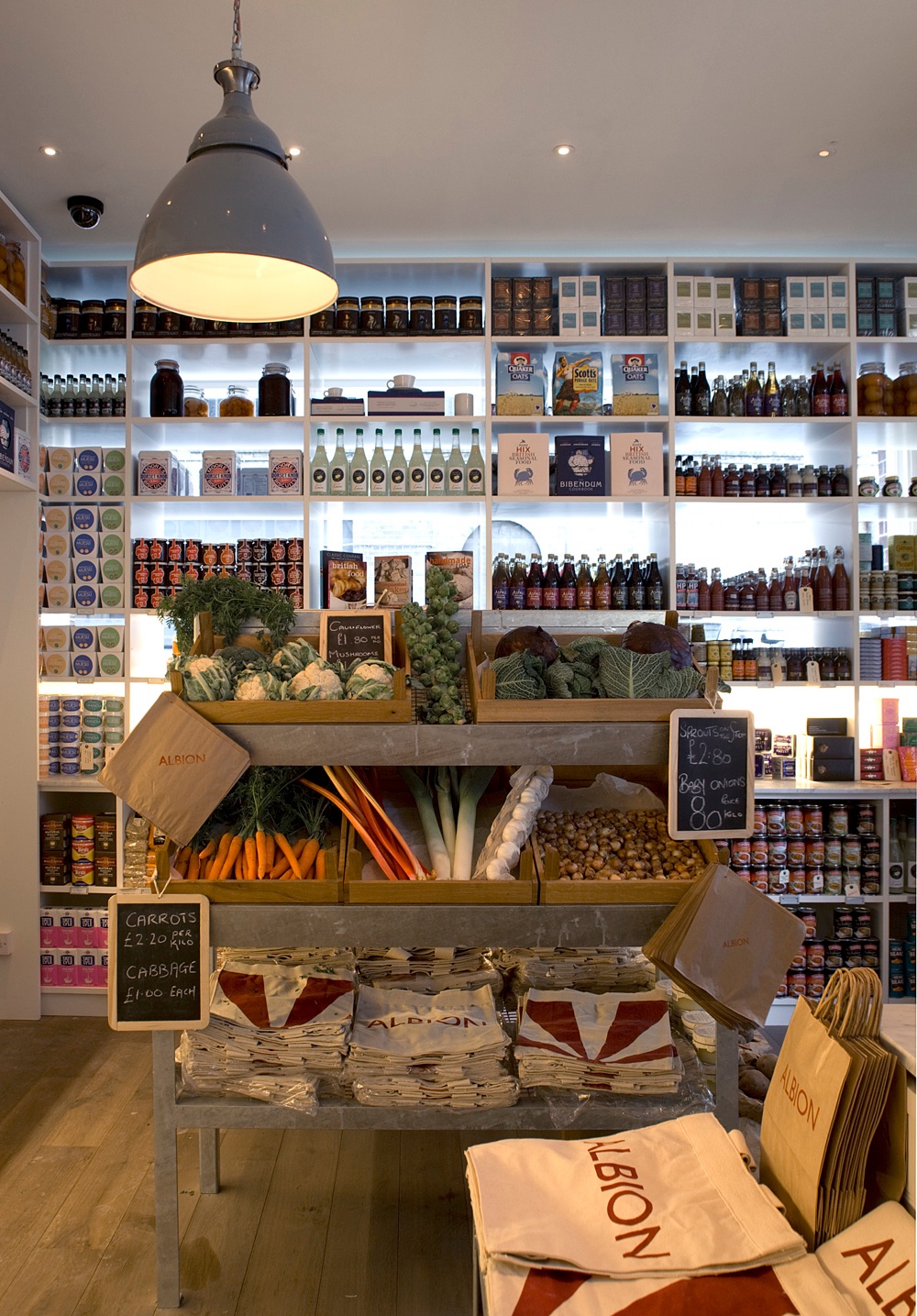 Aperto nel 2009 nel Boundary Building (2-4 Boundary Street), Albion è un punto di riferimento a Shoreditch. Caffè, ristorante, piccolo negozio, propone prodotti freschissimi di provenienza esclusivamente inglese. I colori della frutta e della verdura esposti all’ingresso del locale invitano ad entrare, come il pane, fragrante e profumatissimo, preparato tutti i giorni all’interno del panficio sotto la guida del parigino Matthieu Cauty. La scelta è ampia: da quello con pasta madre alla baguette francese, ma anche pane ai cereali, alla frutta, ai semi e alle erbe. Dai forni di Albion escono poi focacce, pain au chocolat, cornetti, pain aux raisin, torte e macarons, mentre sugli scaffali le prelibatezze culinarie non si contano. Aperto sette giorni su sette, dal mattino alla tarda sera, il negozio è specializzato nella cucina britannica: il luogo giusto per spaziare dai prodotti lattiero-caserai alle carni biologiche, da frutta e verdura di stagione a marmellate, tè, biscotti, succhi di frutta.