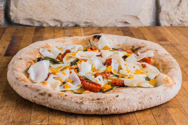 – Le pizze estive di Antonio Pappalardo portano il nome di: Tagliatella di seppia, datterino confit, bottarga di muggine e agretti; Battuta di cappasanta, mango, noce macadamia e melanzane a funghetto. La prima nasce dalla voglia di proporre la seppia sulla pizza in una forma diversa: viene cotta a vapore sottovuoto quindi raffreddata e tagliata in affettatrice come una tagliatella; la seconda invece è un omaggio dello chef della Cascina dei Sapori a due luoghi che ama molto: il primo è Napoli che viene rappresentato dalle melanzane a funghetto, il secondo è l’Australia a cui deve l’utilizzo della noce Macadamia che ritorna spesso nei suoi menu. La pizzeria di Antonio Pappalardo si trova a Rezzato (Bs) ed è conosciuta per la vasta proposta di impasti: dalla classica pizza al piatto fino alla pizza in teglia alla romana (a impasto diretto, croccante, cotto nel forno elettrico e rigenerata in quello a legna), o alla pizza da degustazione.