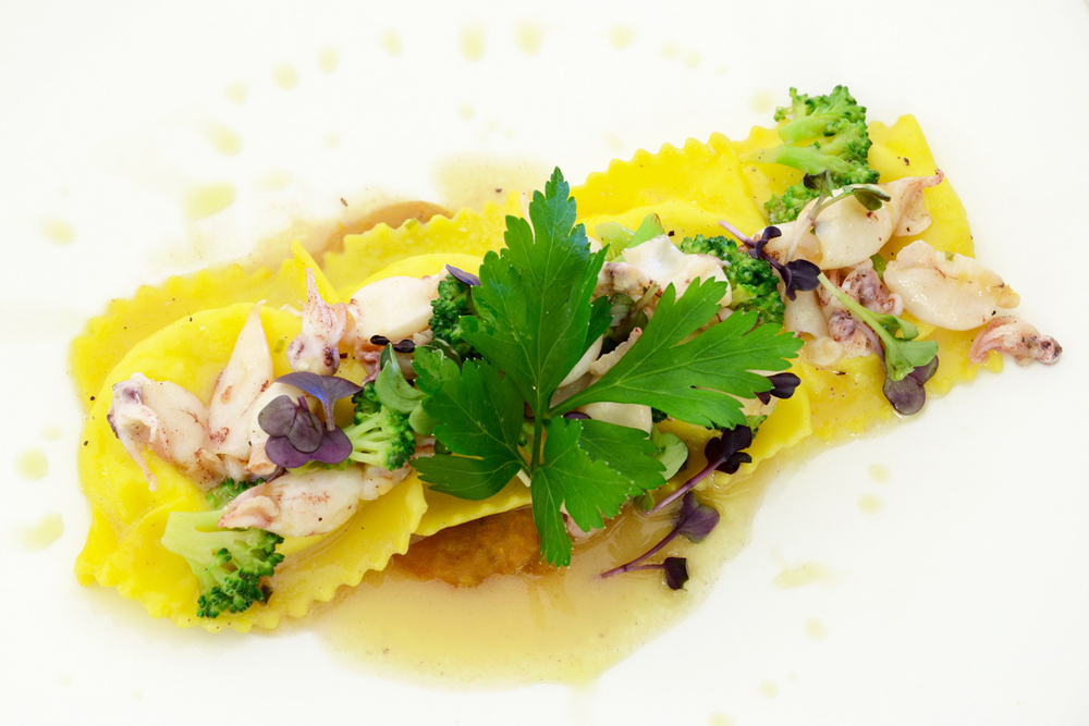 Mettendo fra parentesi intolleranze varie, ‘non amo particolarmente mangiare i primi, però mi piace moltissimo cucinarli, perché sono quelli che mi danno maggiori soddisfazioni: più che in altri piatti, è qui che si sente veramente la mano dello chef ed è qui che riesco a mettere la mia personalità con maggiore forza’. E dovendo scegliere un primo in particolare, ‘da qualche mese mi dà molta soddisfazione il raviolo con del camembert di bufala, i calamari spillo, broccoletti e una crema di pomodori secchi’.