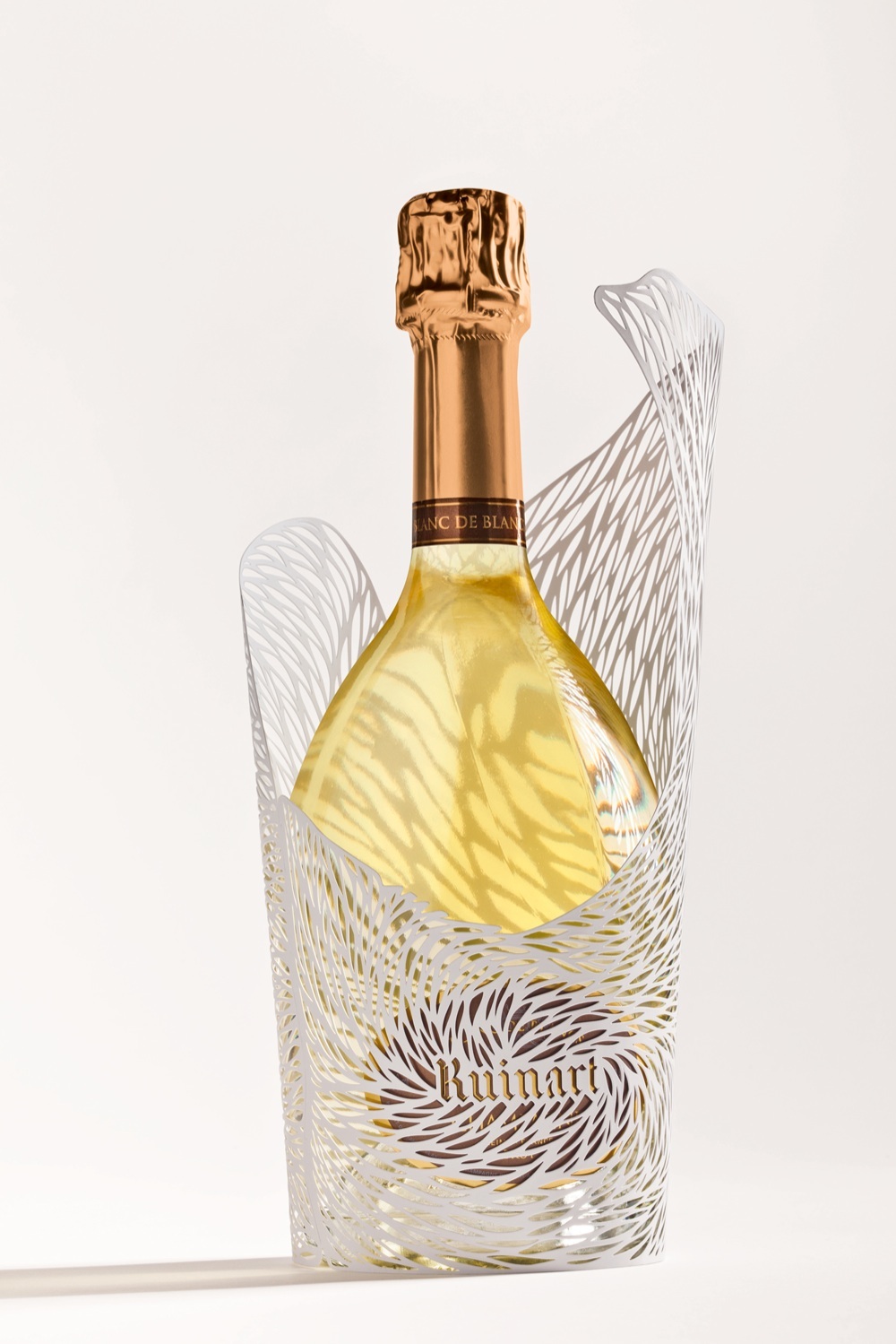 I riflessi oro dello Chardonnay Ruinart Blanc de Blancs sono esaltati dall’effetto ingrandimento della glacette disegnata dall’artista scozzese Georgia Russell. Le incisioni provocano un effetto ‘prisma’ che produce un gioco di luce e ombre intorno alla bottiglia della collezione in edizione limitata, in vendita esclusiva presso Cova Milano fino a giugno 2015 oppure online.