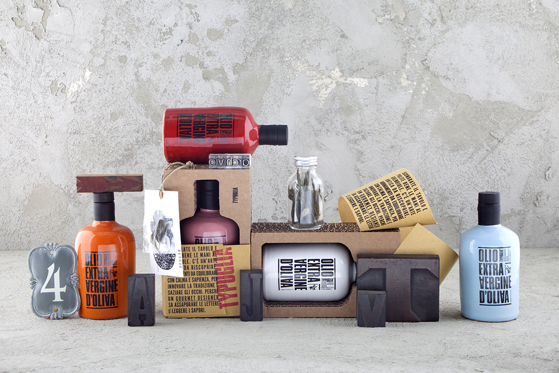 Olio e design, due regali in uno Tutto il buono e il bello della Puglia racchiuso in pacchetto regalo. Riciclabile. L’antica arte della tipografia, il gusto dell’olio extra vergine d’oliva pugliese e la creazione di design sono al centro dell’idea di Leonardo di Renzo, il designer andriese che ha voluto valorizzare la qualità dell’olio non sotto il solito marchio o etichetta, ma attraverso un oggetto riciclabile. Perchè anche il packaging in cui è racchiuso il Typuglia è capace di comunicare il territorio e le sue tipicità e adattabilità. Oltre alla bottiglia esteticamente interessante, la scatola si trasforma in un lume da tavolo. Geniale.