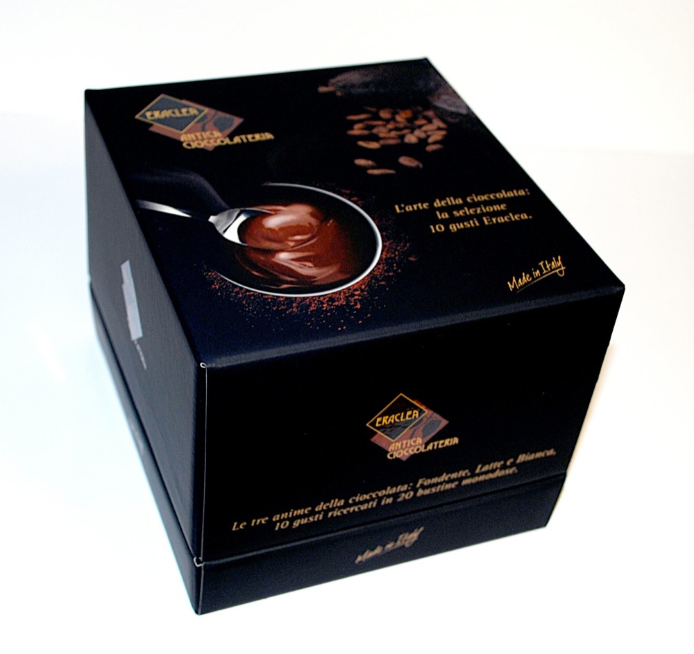 La ChocoBook Eraclea è un cofanetto che custodisce l’occorrente per preparare la cioccolata calda all’italiana, quella densa e cremosa, in dieci gusti: Fondente Peperoncino di Calabria, Fondente – Cacao 39%, Fondente Arancia e Cannella, Fondente Light, Latte Pistacchio di Sicilia, Latte – Cacao 13%, Latte Nocciola, Latte Cocco, Bianca Extra, Bianca Nocciola Piemonte IGP. I prodotti Eraclea sono acquistabili online.