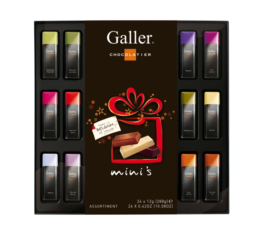 Da una piccola pasticceria a conduzione famigliare alla Casa Reale belga. È questa la storia cominciata nel 1930 e che oggi continua sotto la guida di Jean Galler, nipote del fondatore e “Fornitore Ufficiale della Casa Reale belga”. Per questo Natale Galler propone la Mini Baton Collection: racchiude 18 barrette di cioccolato assortite in 8 gusti speciali. Per un regalo ancora più goloso Galler ha realizzato per queste festività una confezione che riunisce ben 24 barrette di cioccolato assortite per soddisfare tutti i gusti. Il prodotto è distribuito da Eurofood.