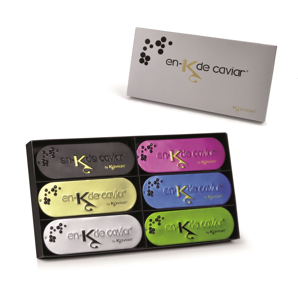 Una chicca per appassionati gourmet, uno sfizio per gli amanti del caviale, della maison Kaviari: un cofanetto contenente 6 scatolette da 15g di caviale Oscetre, accompagnate da un cucchiaino per la degustazione. Il prodotto è distribuito da Eurofood.