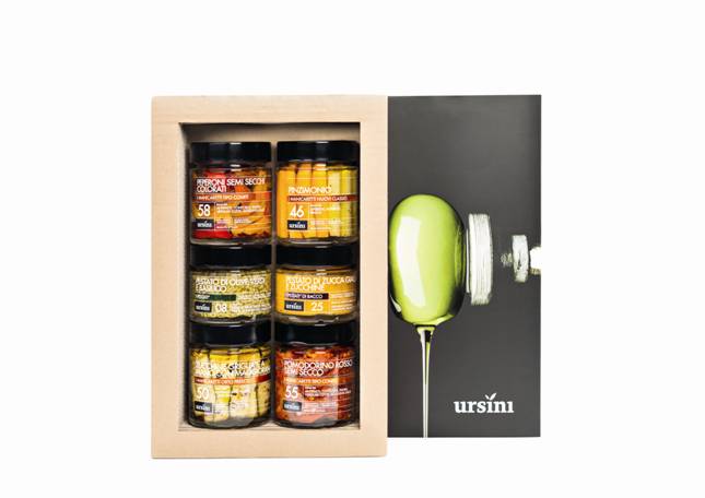 L’azienda abruzzese quest’anno propone per la prima volta l’Olio Fresco Ursini, ovvero un Olio Extra Vergine di Oliva Novello, di prima spremitura. Una chicca gourmand che va ad aggiungersi alle sfiziose ricette in vaso, perfette per festeggiare un Natale gourmet, come ad esempio il Pestato di Parmigiano e aceto balsamico, il Pestato di Baccalà e Olive verdi o i Piparoli con mousse di baccalà. Tutti si possono riunire in eleganti scatole regalo studiate ad hoc per le feste.