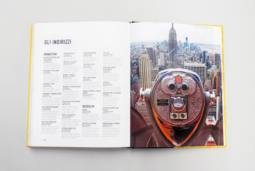 L’autore, newyorkese ma parigino d’adozione, sostiene che ‘essere un espatriato ha i suoi vantaggi. Tanto per cominciare si arriva a rimpiangere e apprezzare tutte quelle cose quotidiane che si davano per scontate’. Come la piccola pasticceria o la caffetteria sempre aperte per una tazza fumante di caffè e un dolce fragrante. Lasciandosi guidare dalla memoria olfattiva e gourmand di Grossman, attraverso i suoi indirizzi preferiti, è difficile non ritrovarsi con l’acquolina in bocca (e con la fretta di mettersi ai fornelli): ‘Ho raccolto le ricette di cui ho voglia quando sento la mancanza di New York e che, di fatto, riflettono la mia esperienza gastronomica newyorkese: un patchwork di diners greci e gastronomie ebraiche , un po’ Chinatown vecchia maniera, un pizzico di trash food, del sano cibo americano e un mucchio di altre cose impilate in un melting-pot’. Tutto questo è la New York da assaggiare e da scoprire tra le pagine del libro.
