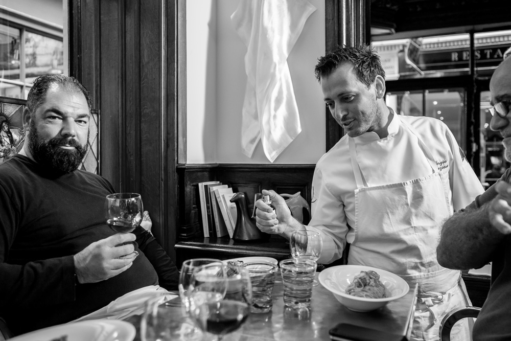 Parigi, 2e arondissement, non lontano dall’Opéra: è qui, all’incrocio tra boulevard Montmartre e rue Saint-Marc, che è sopravvissuto il Passage de Panoramas, piccola galleria coperta affollata di caffè e botteghe antiche. Tra queste lo storico atelier d’incisione Stern che ha occupato il numero 47 dal 1849 fino al 2008, e che oggi – dopo due anni di lavori – riapre i battenti come Caffè Stern, un caffè bistrot all’italiana nello stile di Raffaele e Massimiliano Alajmo (tre stelle Michelin) e della loro meravigliosa famiglia.
