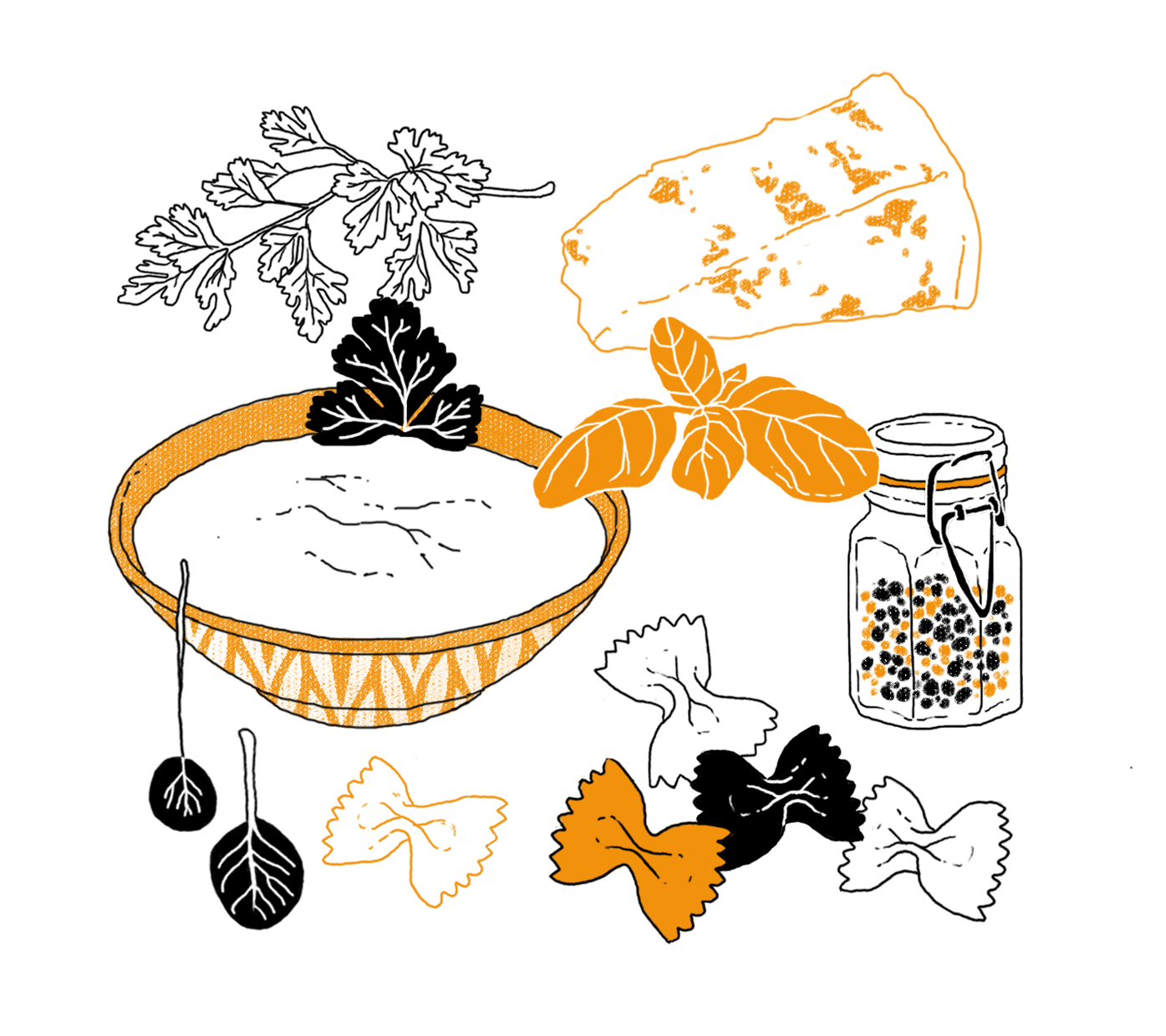 Farfalle: le paste piatte tipo reginette napoletane o le pappardelle ricce, come le farfalle, si sposano con salse cremose a base di formaggi o verdure passate, erbe aromatiche e spezie.