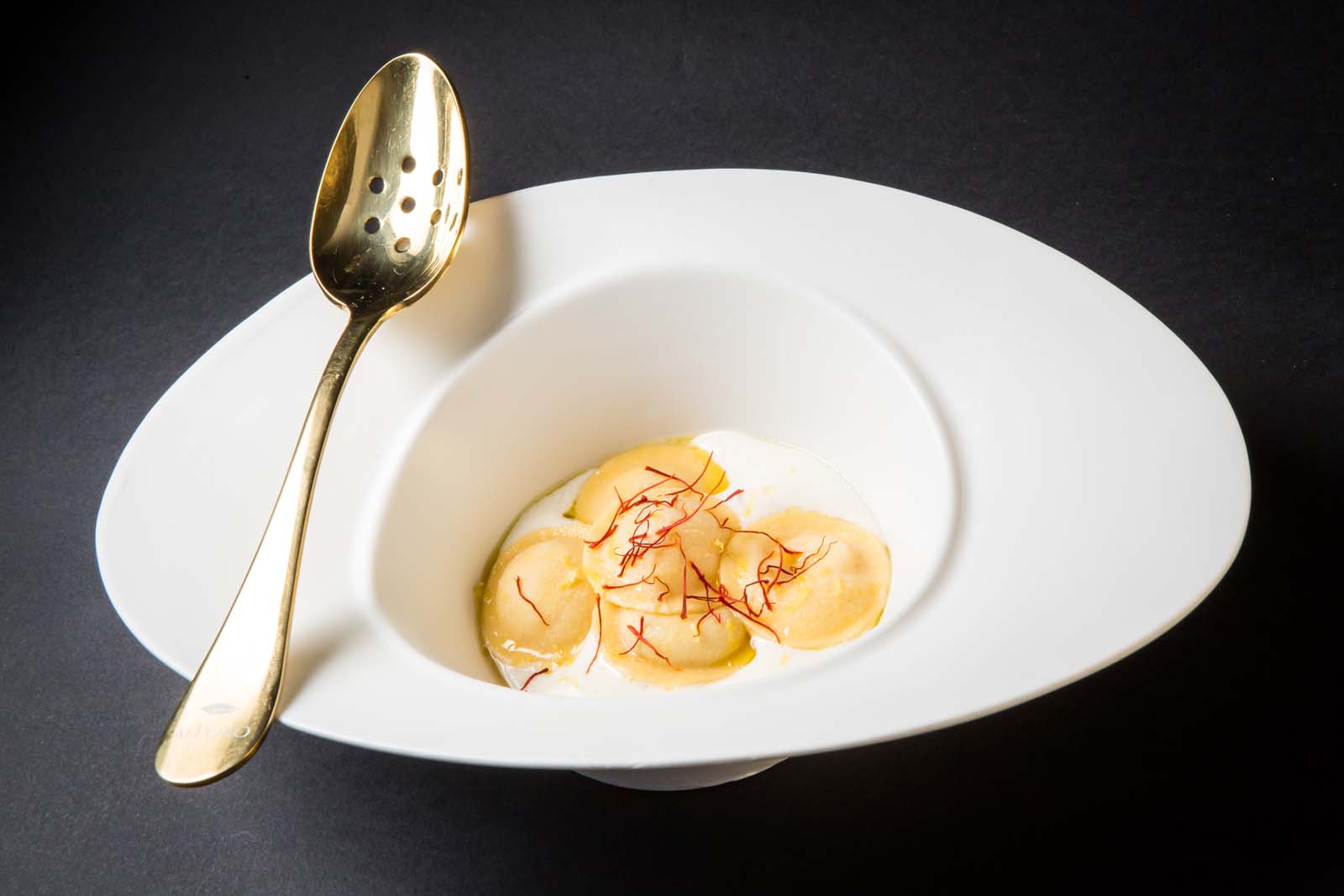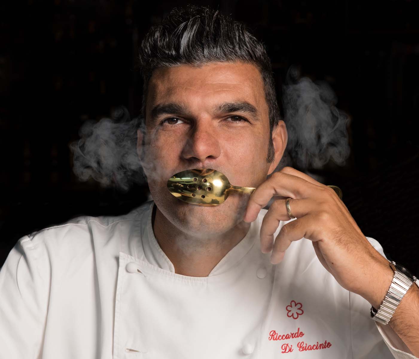 “Per andare avanti faccio sempre un passo indietro. Per voltarmi, vedere cosa ho fatto, dove sono in quel momento. E chiedermi dove voglio andare. Allora mi muovo verso il futuro che è già passato”. Ha le idee chiare Riccardo di Giacinto, quando parla della sua filosofia in cucina. Abruzzese di origini, classe 1976, vanta collaborazioni importanti con cuochi di fama internazionale come Ferran Adrià, padre della cucina molecolare, e Marco Pierre White, enfant terrible della ristorazione inglese. Oggi lo chef è al timone del ristorante stellato All’Oro (1 stella Michelin), dove propone una cucina fortemente ancorata ai sapori della tradizione, che reinterpreta i grandi classici della cucina italiana in chiave contemporanea, dando vita a risultati soprendenti.