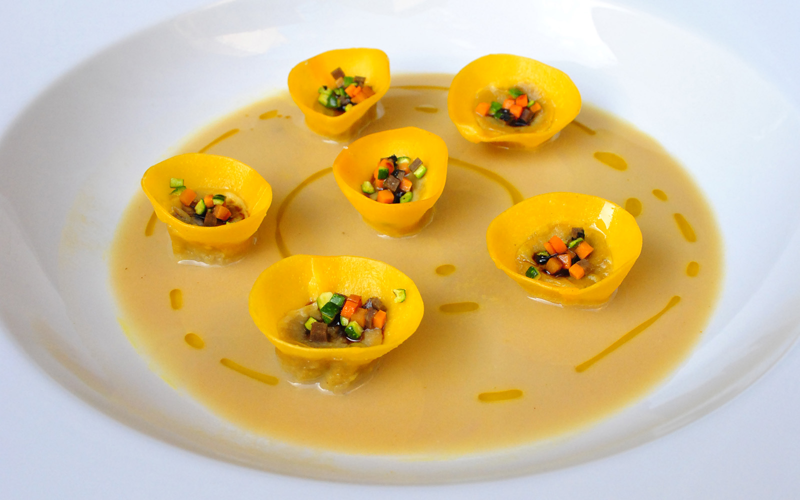 Un ottimo primo si fa con la polpa di pesce al forno, con cui si fa il ripieno di ravioli da servire con brodo di pesce o crema di verdure, “per esempio – dice la Chef – di finocchio”.