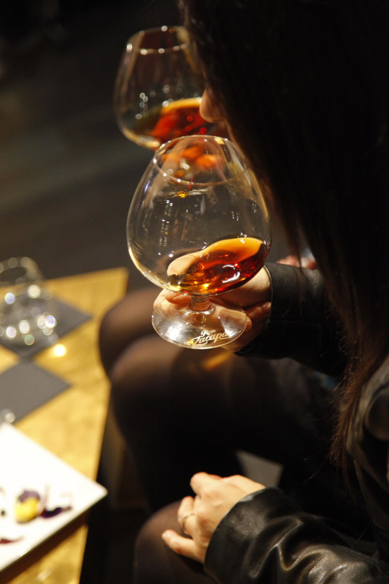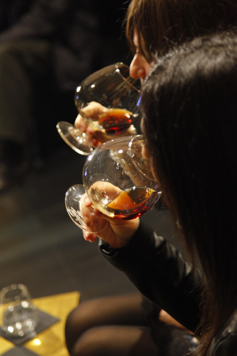 La prima regola è utilizzare il bicchiere corretto, lo snifter (in vetro sottile, con stelo e vaso panciuto) ma anche un calice da vino bianco può assolvere la funzione.