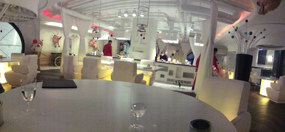 Luogo di design dove ogni cosa è studiata e realizzata appositamente per integrarsi nella coreografia della cena è senz’altro DiverXo, lo chef del tre stelle Michelin madrileno, Dabiz Muñoz, pur essendo estroverso, non ama molto incontrare il suo ‘pubblico’. I suoi piatti sono un susseguirsi di sapori forti e netti, ricchi di elementi. Ogni portata è servita in più momenti, un crescendo di gusti e consistenze che rendono la degustazione una continua, sorprendente evoluzione.