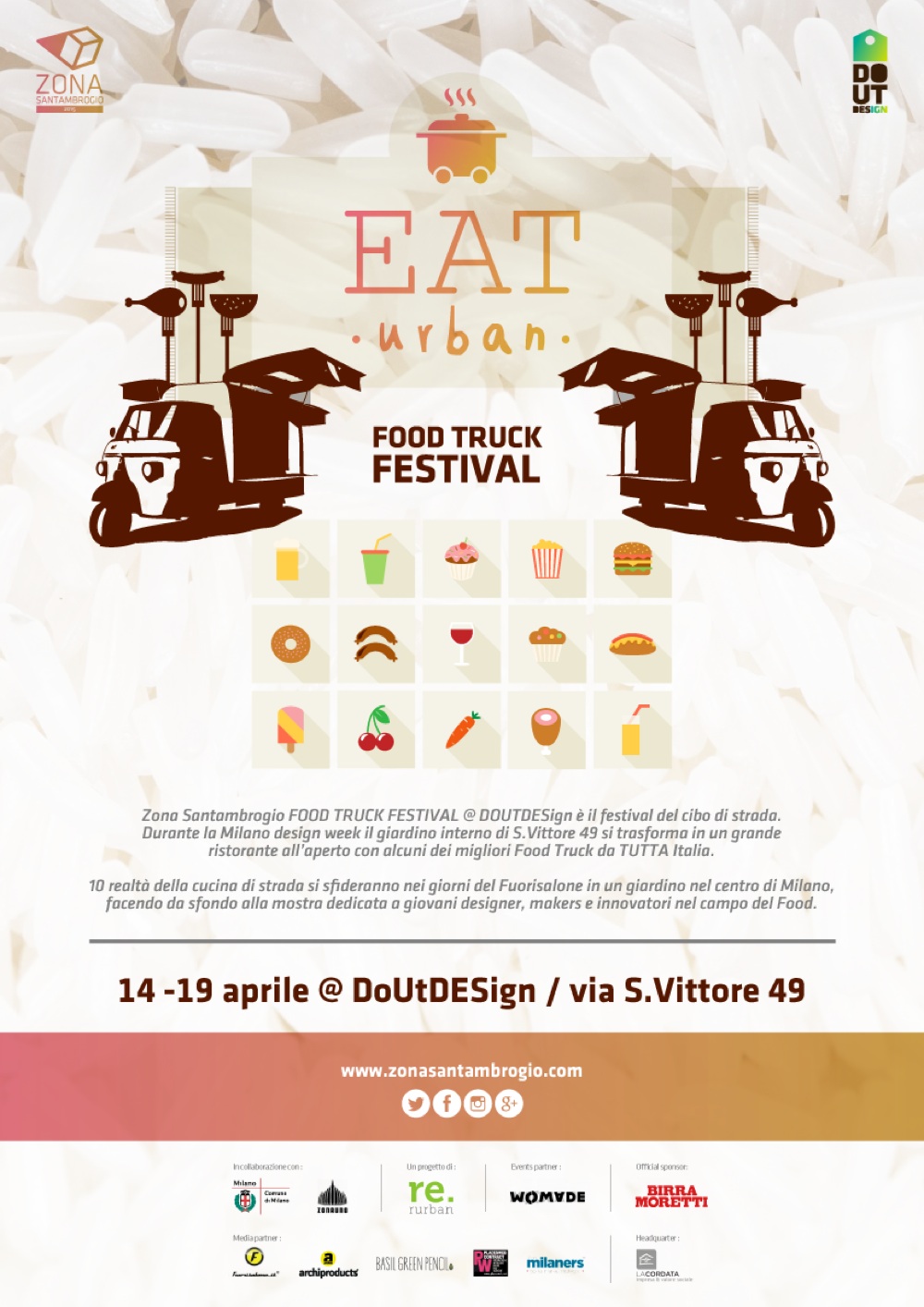 Negli spazi di via San Vittore 49, a partire dal 14 aprile, aprirà Eat Urban il ristorante a cielo aperto del Fuorisalone: eccellenze street food, preparate su Apecar e Trucks di design, saranno il menù proposto per tutta la settimana nel Zona Santambrogio Design District. Saranno dieci le realtà gastronomiche della cucina regionale italiana presenti ogni sera e faranno da accompagnamento agli eventi serali aperti a giovani designer e food innovators. Ecco alcuni degli sfizi che ci aspettano: