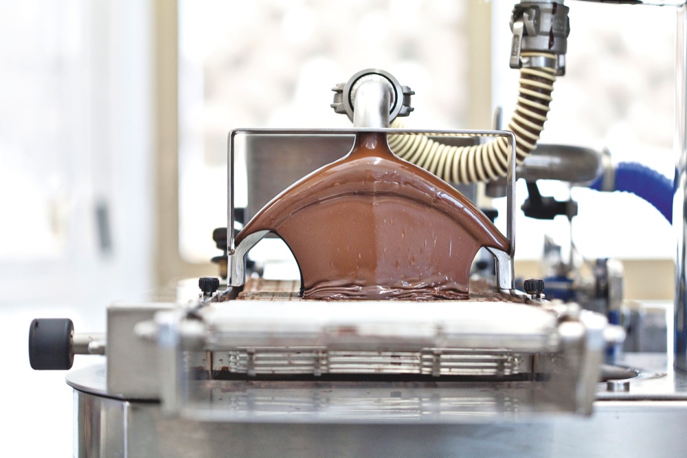 In laboratorio i test durano anche sei mesi. Provare, assaggiare, sperimentare, d’altronde, è diventata la regola per produrre questa eccellenza italiana. «La fase di concaggio, operazione che consiste in un lungo rimpasto in speciali conche a temperatura controllata, è la base della lavorazione della massa di cacao, ma noi la utilizziamo anche come fase finale, per esempio nelle creme spalmabili». Queste macchine amalgamano ed eliminano le ultime tracce di acidità e di umidità, esaltando gli aromi. Si tratta di un procedimento fondamentale, dal quale dipendono la pastosità, la rotondità e il gusto oltre che la durezza e la lucidità esterna del cioccolato.