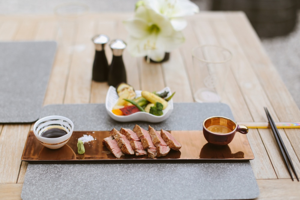 Nel giardino privato dell’Aman Resort che si affaccia sul Canal Grande, lo chef Naoki Okumura di Kyoto firma un menù che sposa le prelibatezze locali con la tradizione della cucina francese
