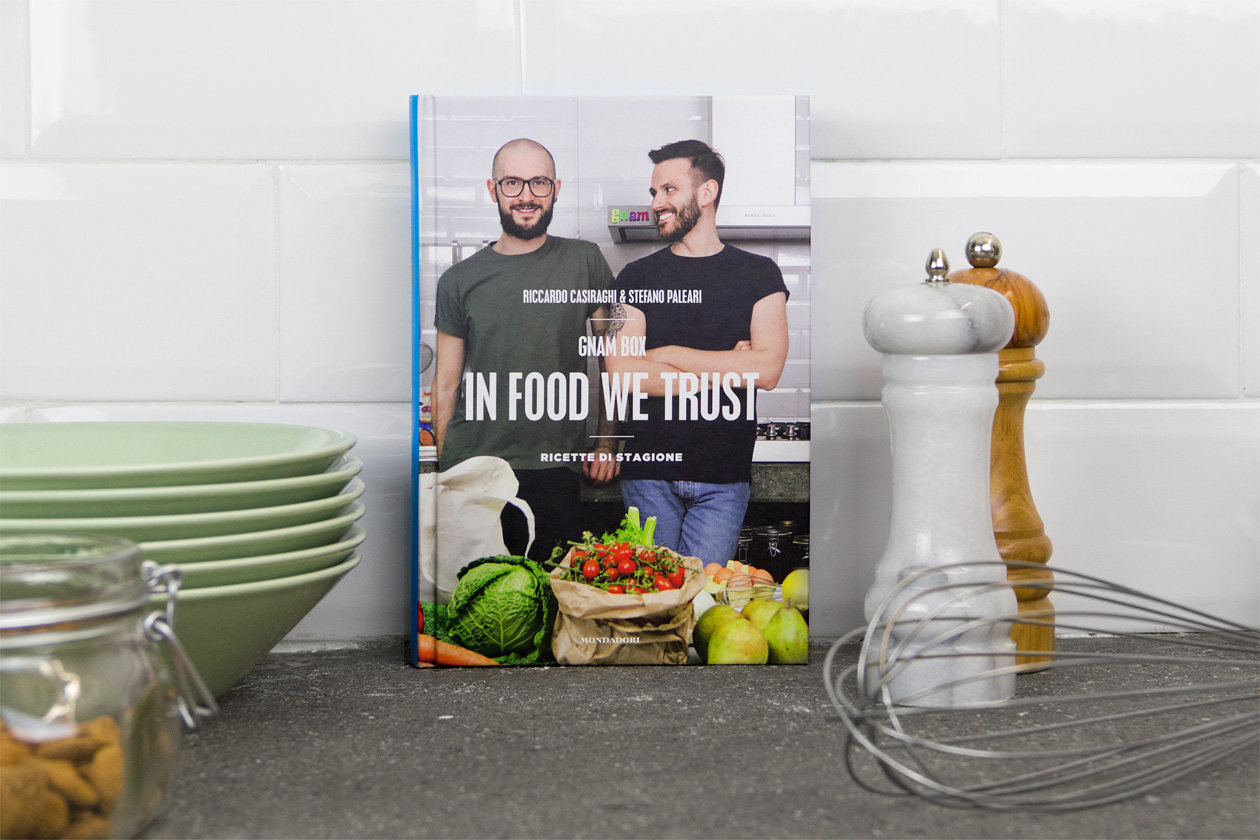In food we trust è il loro primo libro, diventato un successo tra i followers fin dal primo link pubblicato: naturale estensione del sito e specchio fedele del loro stile grafico colorato e pulito, contiene 150 ricette inedite di uso quotidiano, semplici, veloci, spesso vegetariane e soprattutto contemporanee, anche nel modo di presentarle. Filo conduttore l’ingrediente di stagione, la classica verdura dell’orto o il frutto trovato al mercato, dalla A di Albicocca alla Z di Zucchina, con tanto di calendario per sapere in che mese poterle eseguire.