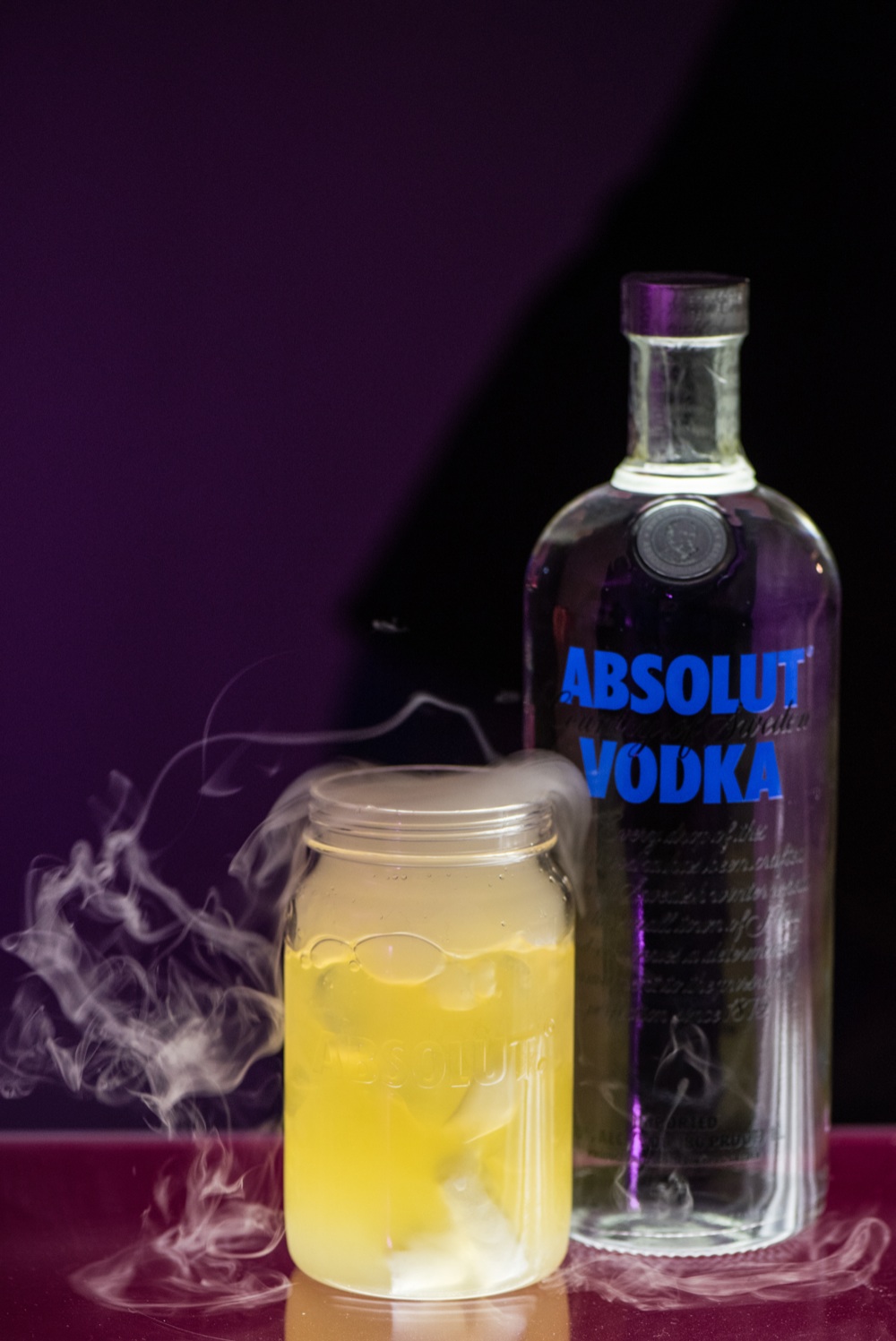 Un piano più in su ecco la Chemical Room che ha trasportato gli ospiti in un laboratorio di chimica tra fialette, tavole degli elementi, miscelatori e bartender con camice bianco che preparavano drink a base di azoto liquido. In lista, Absolut Zero preparato mescolando vodka, sciroppo di maracuja e nitrogeno liquido e Absolut Jem con vodka, ginger beer, bitter alla lavanda e una sfera di limone cristallizzata.