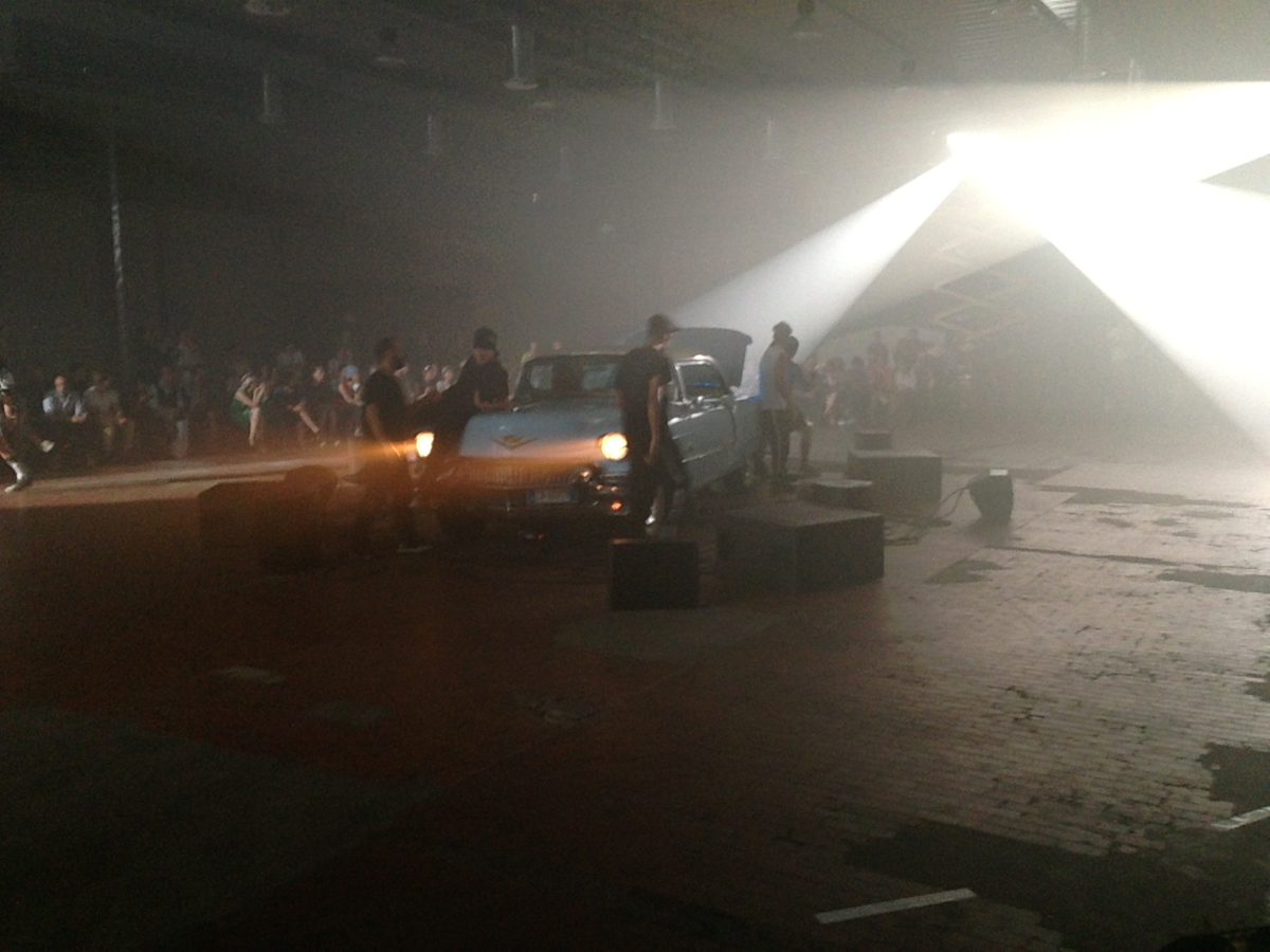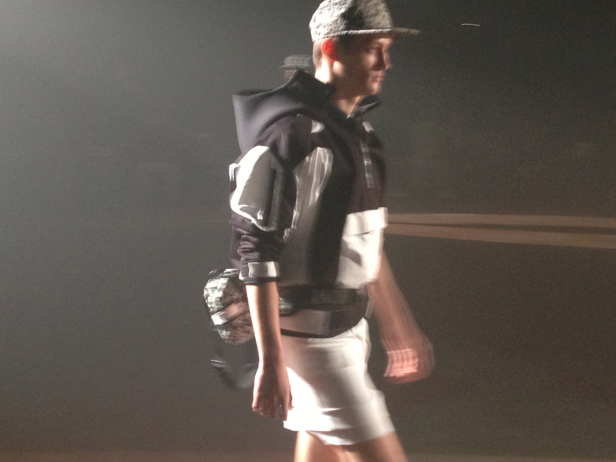 Nella penombra della Dogana di via Valfonda a Firenze, un crepuscolo artificiale. Lo rischiarano i fari di una Cadillac parcheggiata al centro del pavimento industriale. Andrea Pompilio firma per Onitsuka Tiger un quadretto di breakdance metropolitana (gli acrobati da strada si esibiscono davvero durante lo show in piroette mozzafiato). Il corredo genetico sportivo del marchio giapponese si galvanizza con l’estro del designer italiano, qui concentrato in una personale meditazione della cultura hip hop. Ne risente, in senso creativamente positivo, la collezione per la primavera-estate 2014. Felpe over con cappuccio e bermuda, t-shirt e pantaloni da tuta riflettono come un caleidoscopio la street art dei bassifondi di Los Angeles, con il corredo visivo di grafiche digitali che strizzano l’occhio ai graffiti. Cammeo in più la capsule per la donna, che non rinuncia alle viserie e agli zainetti in rete sportiva del corrispettivo maschile.